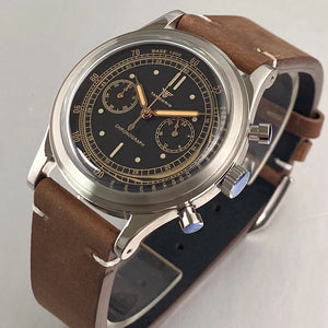 38mm Quartz Pilot Tandorio TD911 Chronograph MIYOTA OS20 Quartz Domed Sapphire Glass Retro 5Bar 2 eyes
