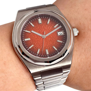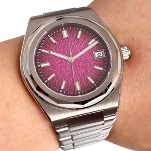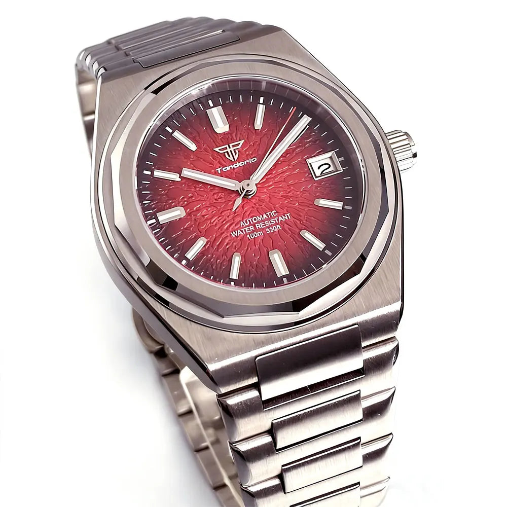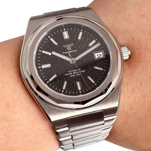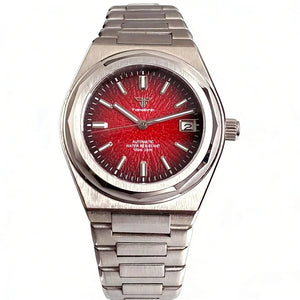 Elevate your wrist presence with the 40mm Engineer Watch Mod Tandorio TD332, a precision-crafted timepiece that blends robust engineering with refined aesthetics. Powered by the reliable NH35A automatic movement, this watch offers dependable self-winding performance. The striking radial dial is available in blue, red, or black, adding a sophisticated touch to any outfit. Encased in a solid 316L stainless steel case and protected by a scratch-resistant sapphire crystal, this timepiece is built for durability. With a screw-down crown and 200m water resistance, it's equally suited for daily wear and underwater adventures. Finished with a comfortable steel bracelet and steel clasp, this 40mm engineer watch delivers uncompromising quality and timeless style.