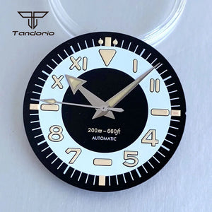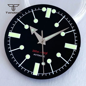Complete Serica-style diver case mod set including case, bracelet, 31mm dial, and hands. Built from solid 316L stainless steel with a double-domed sapphire crystal and 120-click bezel, designed for wide movement compatibility and professional dive performance.
