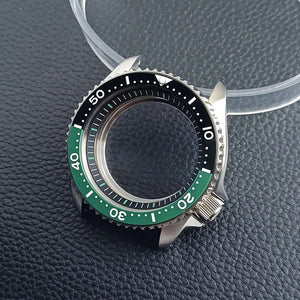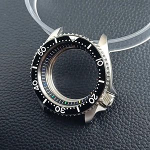 This 42mm SKX007-style watch case is crafted from solid 316L stainless steel, designed for durability and daily mod builds. Equipped with a plane sapphire crystal and screw-down crown at 3.8 o’clock, it offers reliable protection and a classic diver look. Perfect for NH-series movements, this case is ideal for custom watch projects and professional modding.