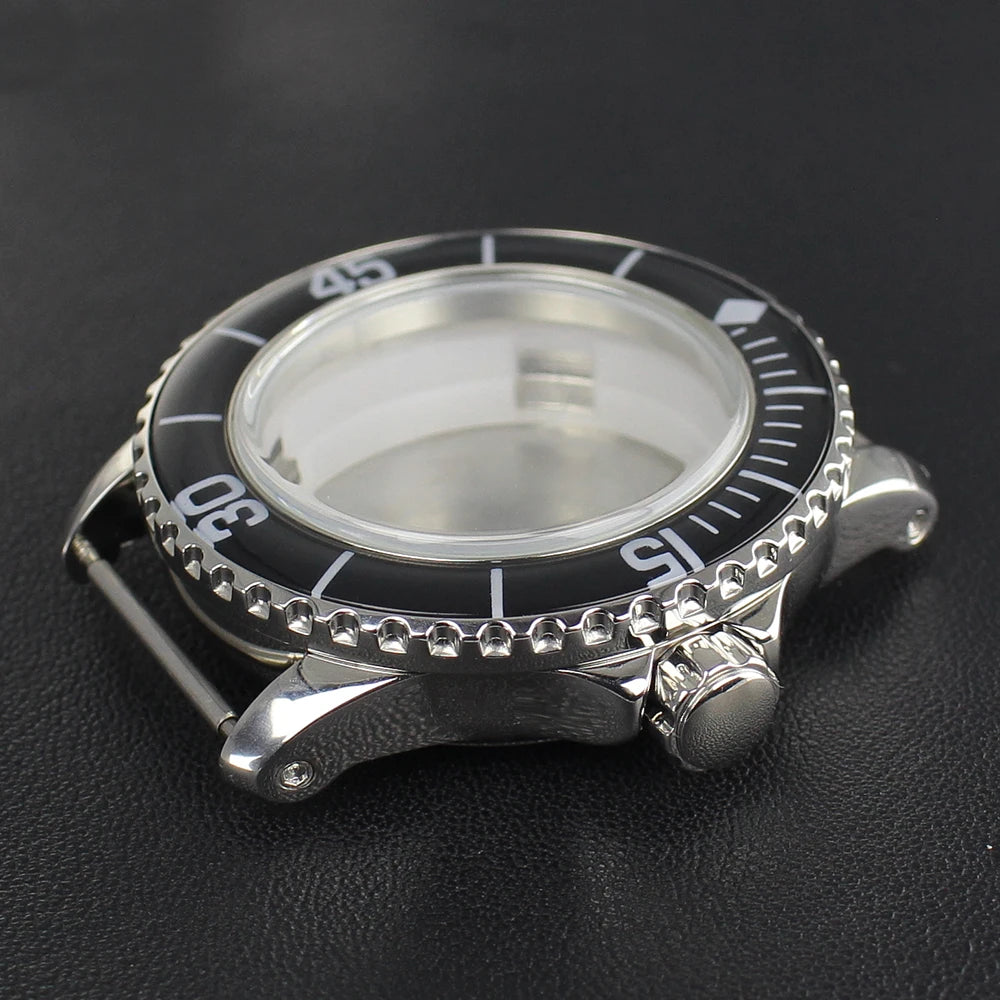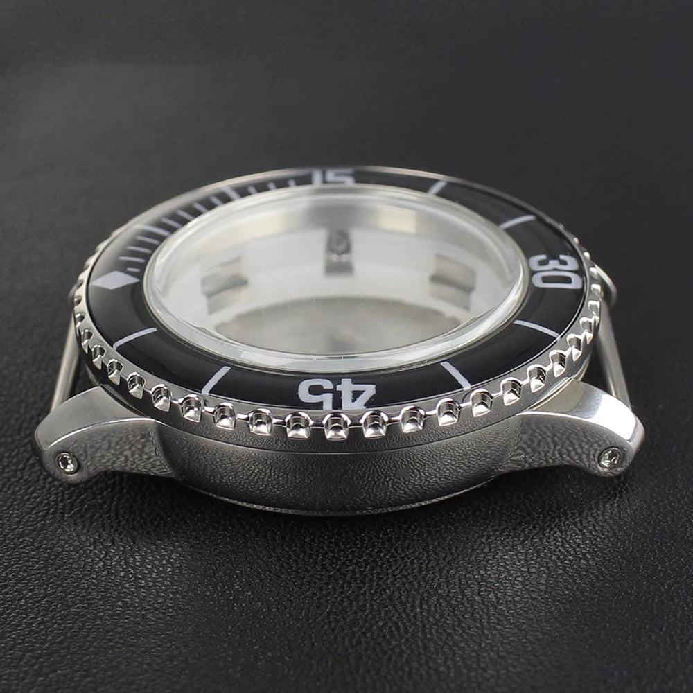 45mm Fifty Fathom Watch Case 316L Stainless Steel Waterproof For NH35 NH36 NH38 Movement Mineral