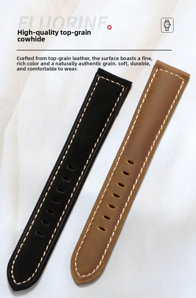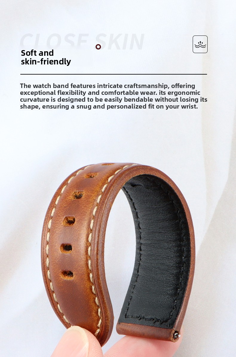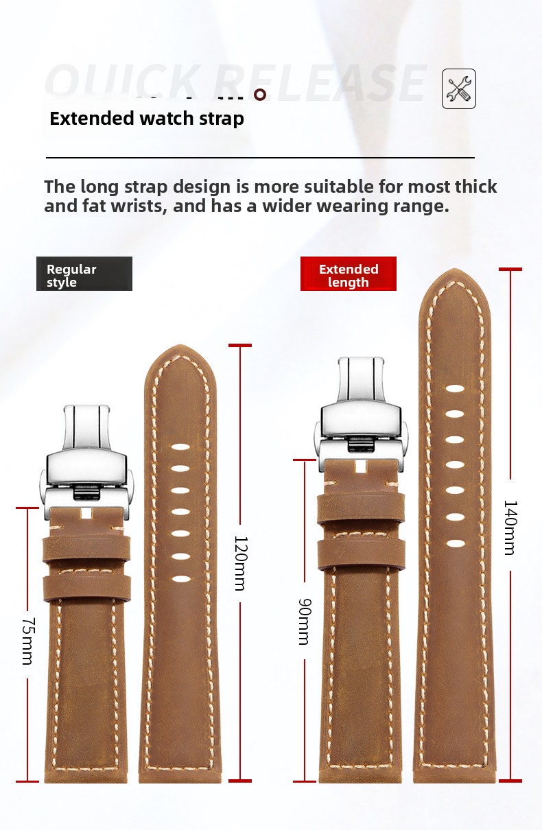 Finally, a strap designed for larger wrists—this extended leather watch strap measures 140mm + 90mm (total ~230mm), perfect for pilots, divers, and field watch enthusiasts who need extra length. Available in 20mm, 22mm, and 24mm widths, this fat wrist band delivers comfort and security without compromise. Built tough for daily wear.