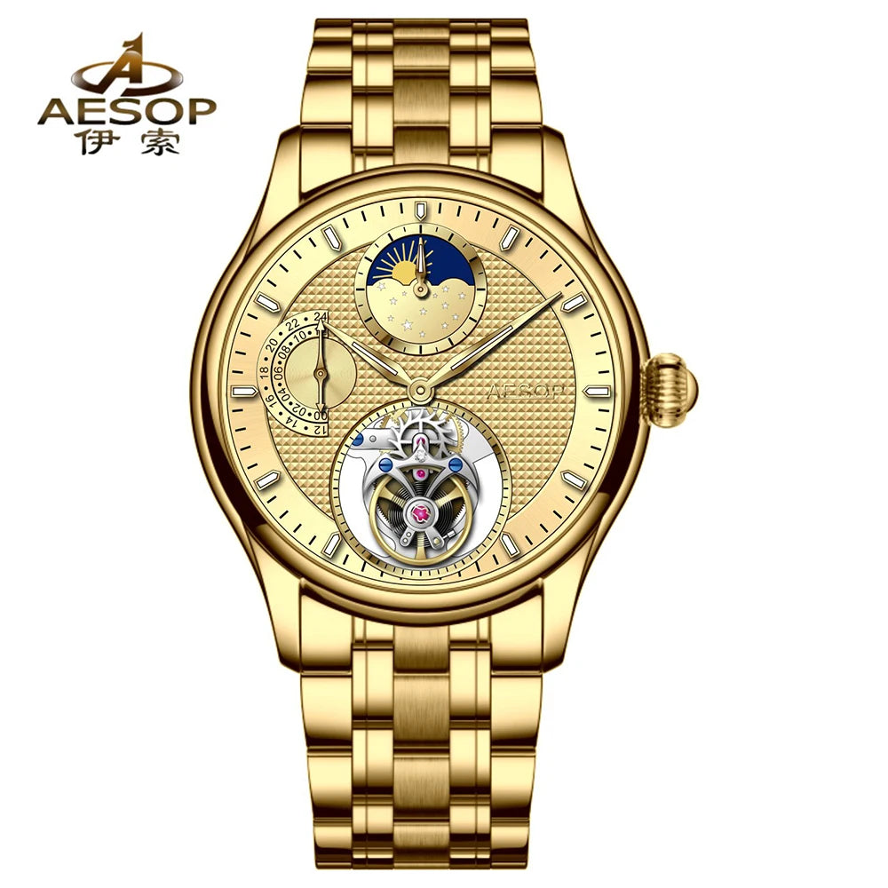 Tourbillon Moon Phase Watch Aesop 7027 42MM Multi-Function Luxury Sapphire Watch Fashion SkeletonTourbillon Moon Phase Watch Aesop 7027 42MM Multi-Function Luxury Sapphire Watch Fashion Skeleton