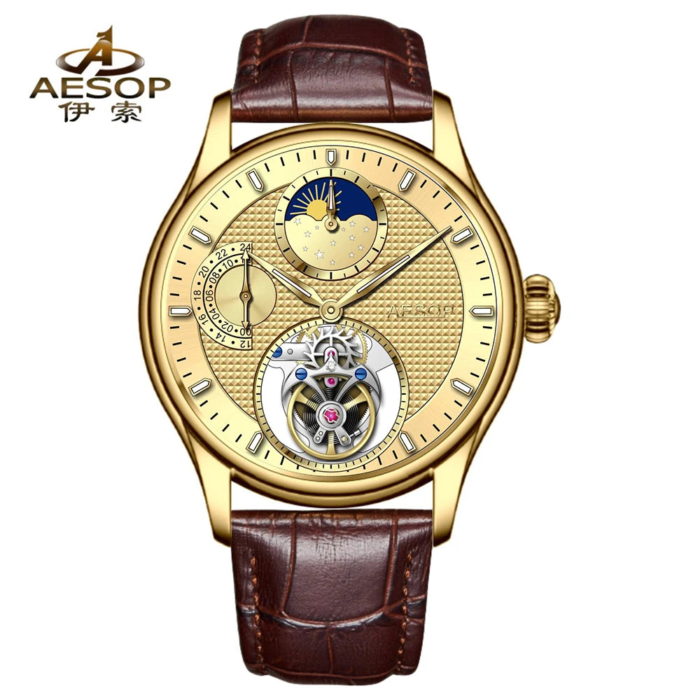 AESOP Men's Mechanical Watches Flying Tourbillon Movement Skeleton Watch for Men Man Male Clock Watch Top Brand Luxury 1963
