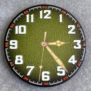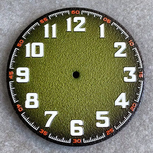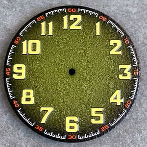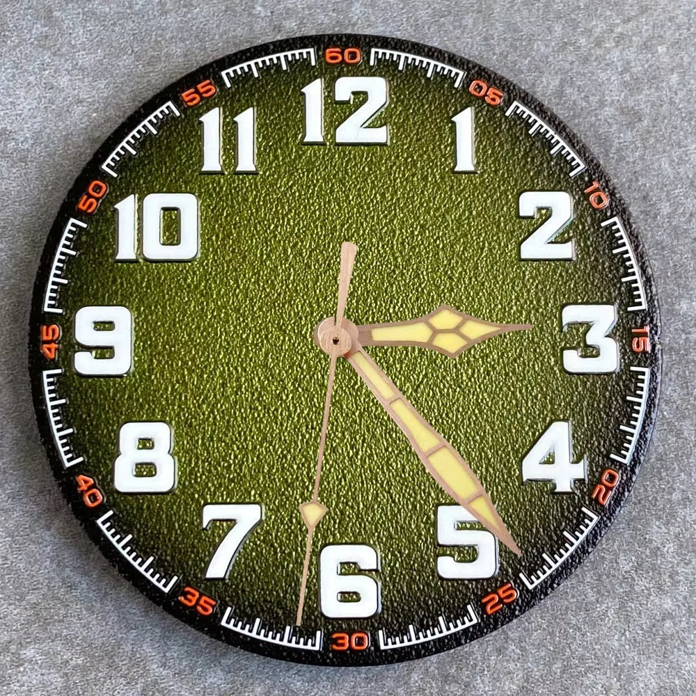 Premium automatic watch replacement dial featuring a clean matte finish with bold Arabic numerals. Designed for large-case builds, this dial offers excellent legibility with green luminous indexes and hands, making it ideal for pilot, field, or tool-style watch mods.