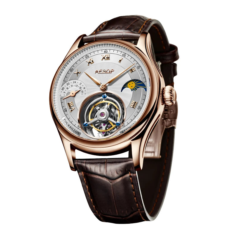 AESOP 7027 Tourbillon Moon Phase Watch – 42mm Multi-Function Sapphire Luxury
