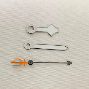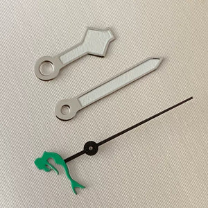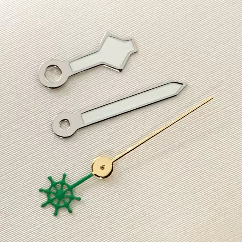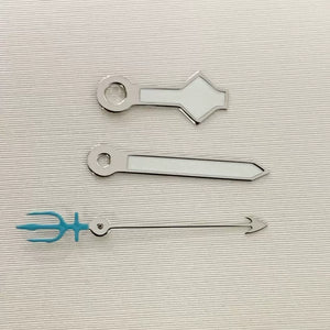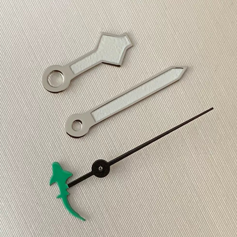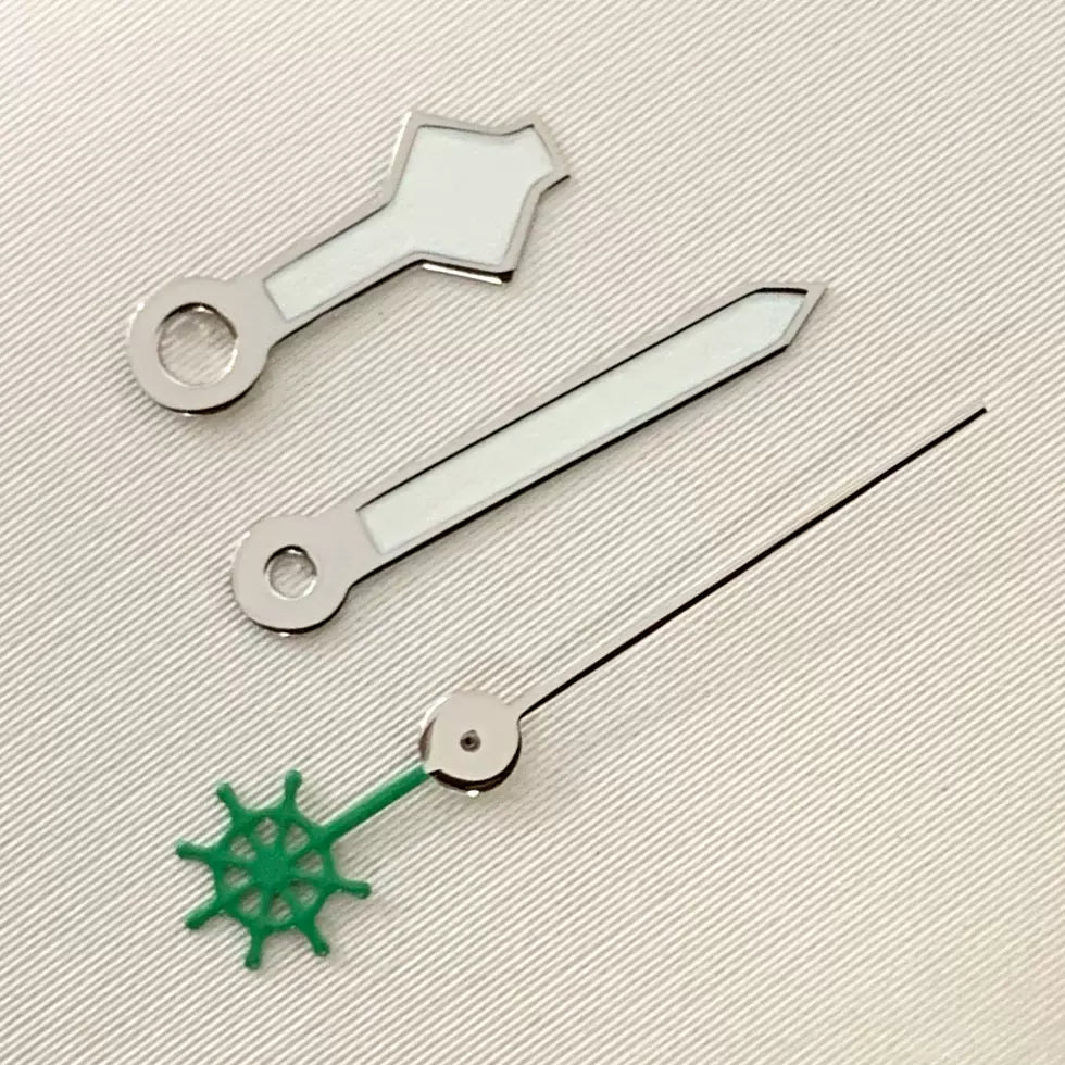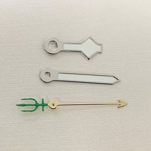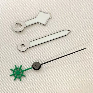 Upgrade your automatic watch build with this set of luminous green three-pronged fork watch hands, precision-engineered for NH35, NH36, 4R, and 7S movements. The vibrant green luminous coating ensures excellent visibility in low-light conditions. Perfect for custom diver or sports watch projects seeking a bold, functional aesthetic.