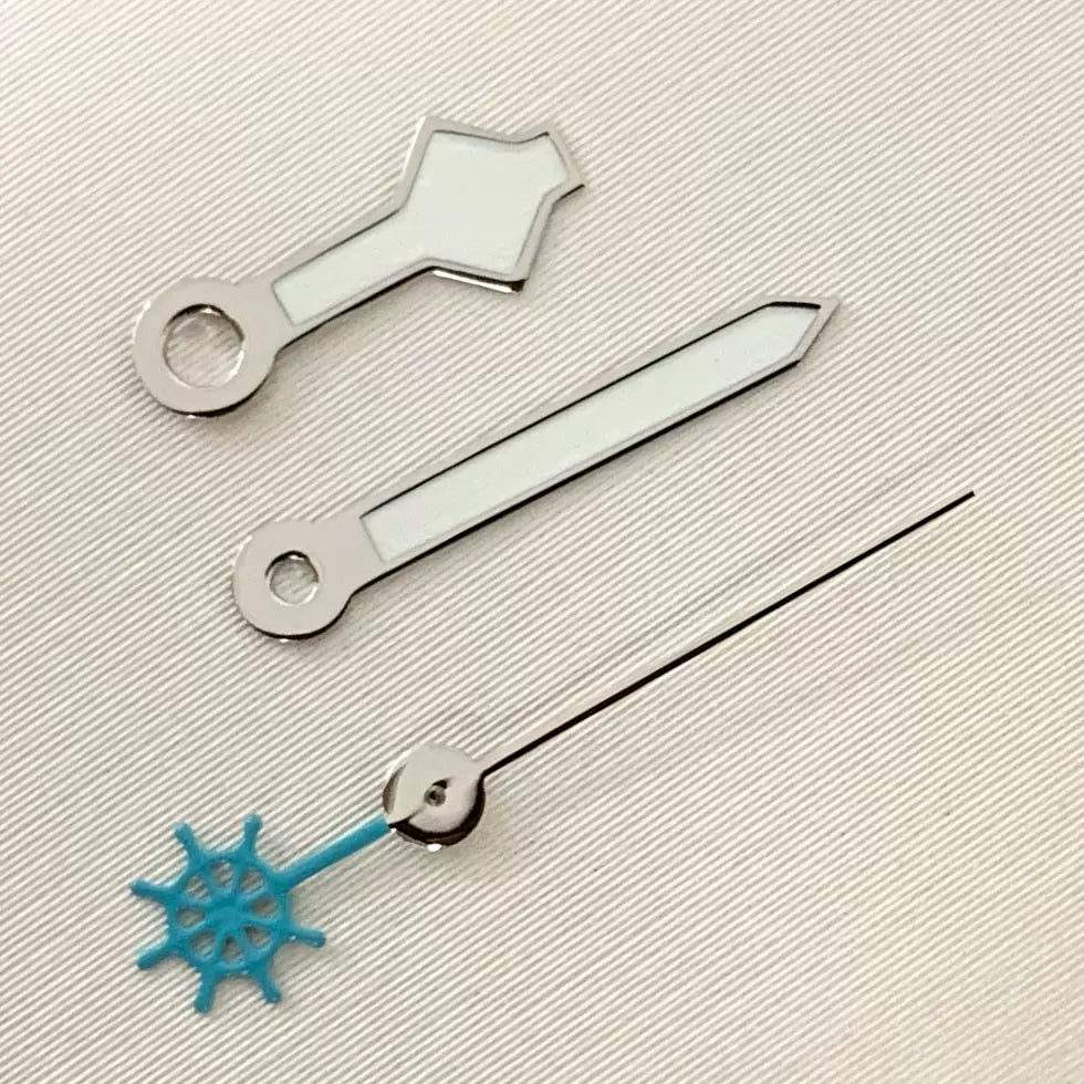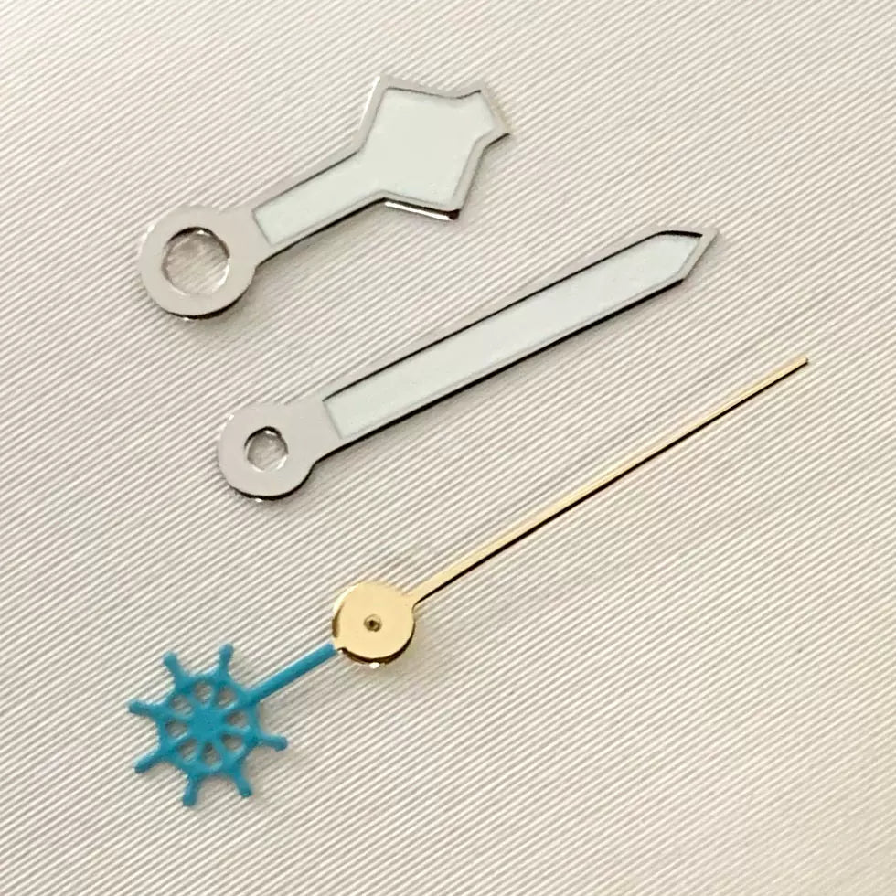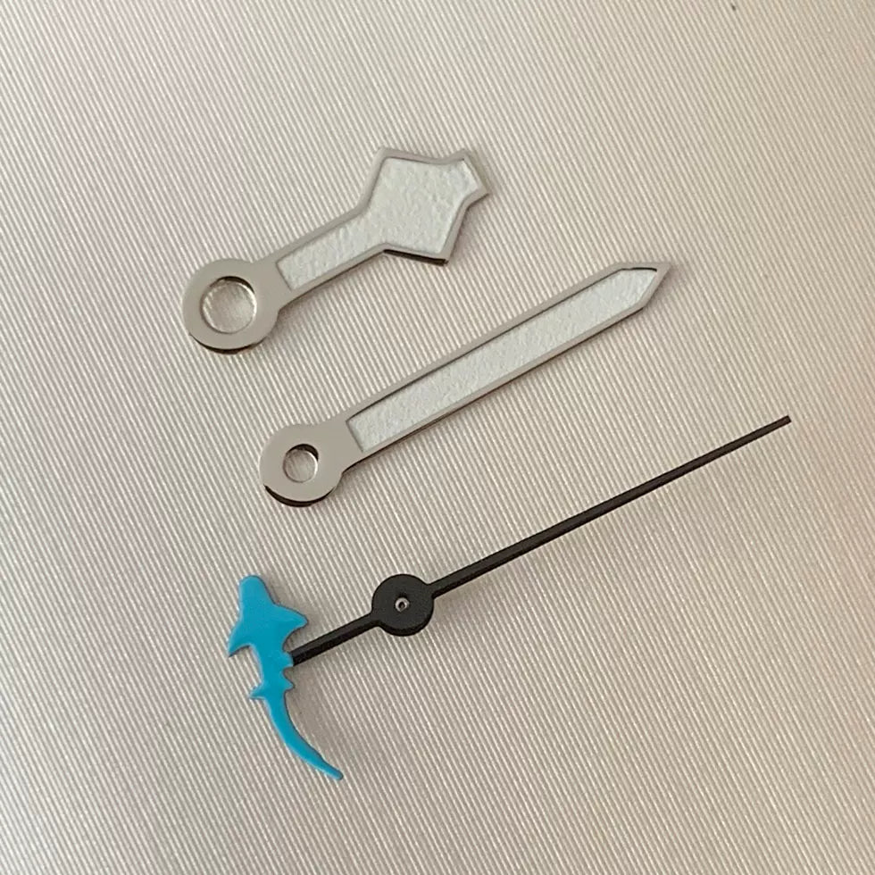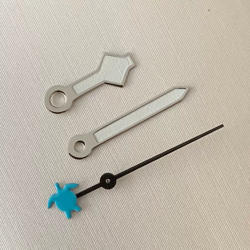 Upgrade your automatic watch build with this set of luminous green three-pronged fork watch hands, precision-engineered for NH35, NH36, 4R, and 7S movements. The vibrant green luminous coating ensures excellent visibility in low-light conditions. Perfect for custom diver or sports watch projects seeking a bold, functional aesthetic.