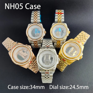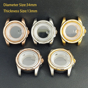 34MM NH05 時計ケース ベゼルインサートリング サファイアガラス ステンレススチール ねじ込み式クラウン レディース 時計ケース NH05 NH06 ムーブメントに適合