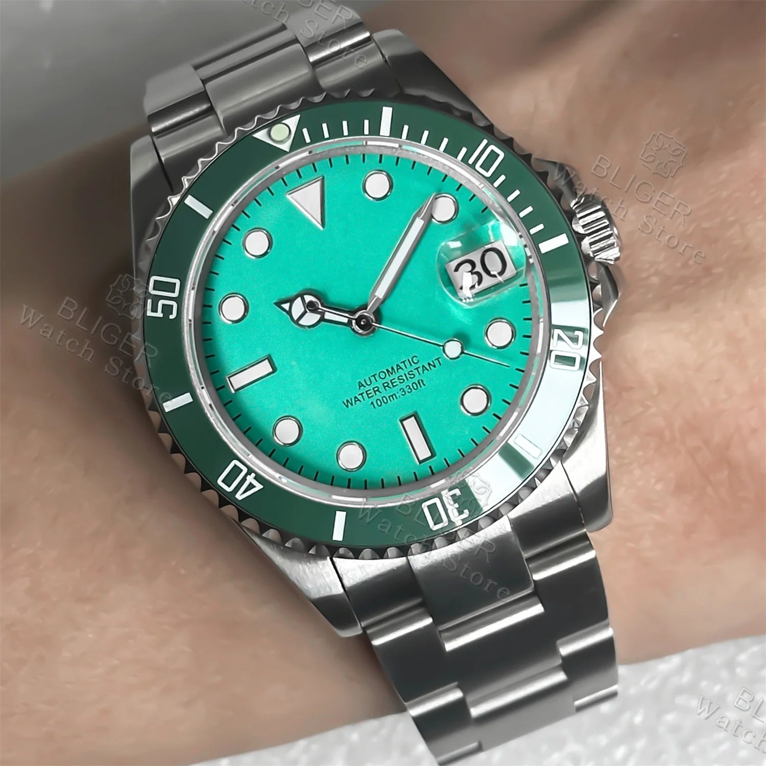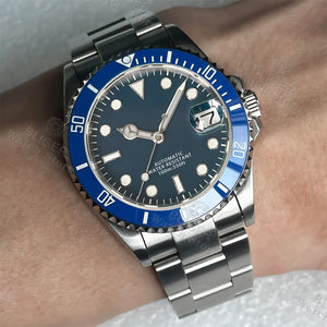Precision-engineered dive watch featuring a robust NH35A or PT5000 automatic movement paired with a scratch-resistant sapphire crystal and rotating ceramic bezel. Available in 36mm, 38mm, or 40mm cases to suit your wrist. Luminous hands and markers ensure visibility in low-light conditions, while the date window adds practical functionality. Built for water resistance and durability, this timepiece combines classic Submariner aesthetics with modern materials and reliable timekeeping performance.
