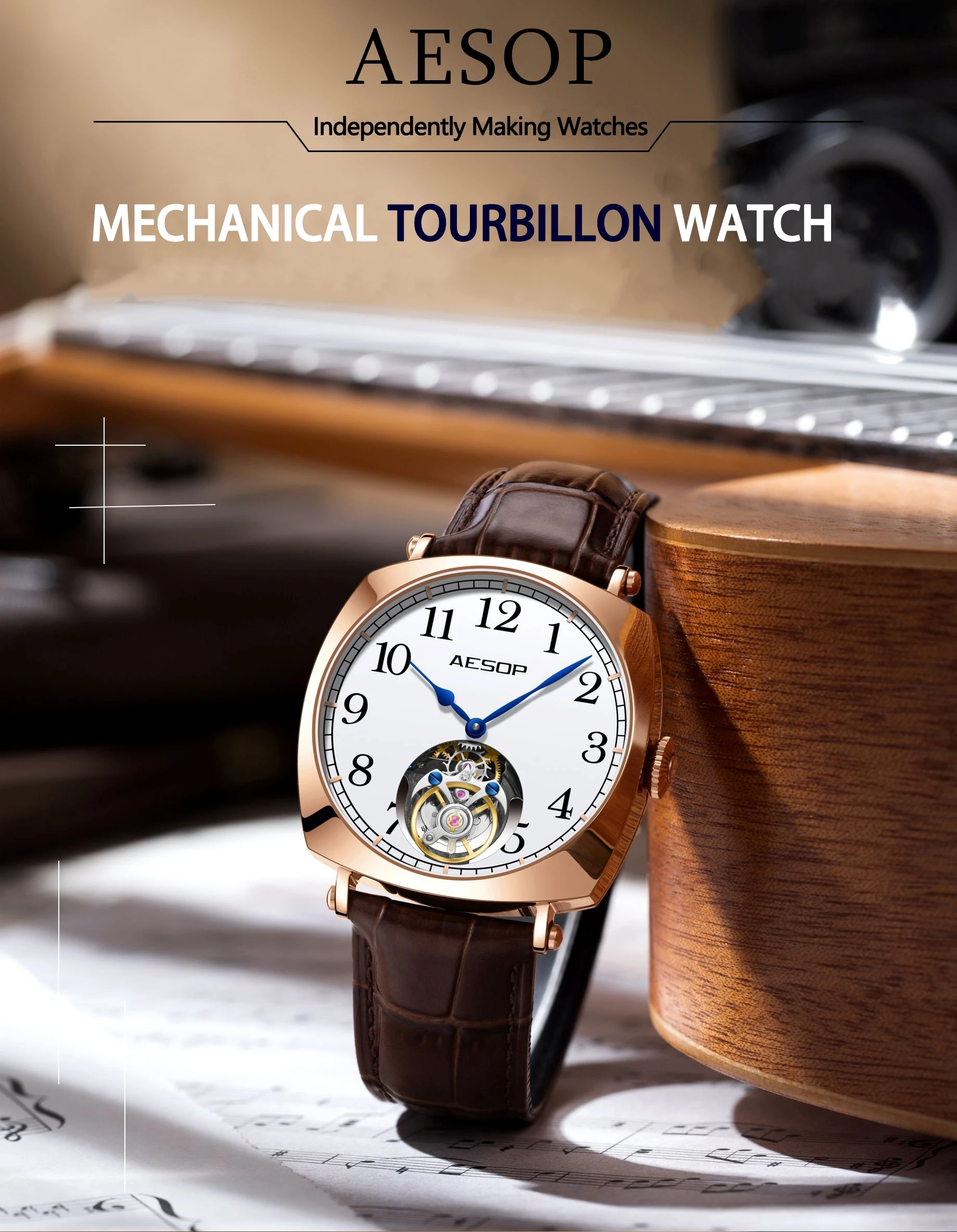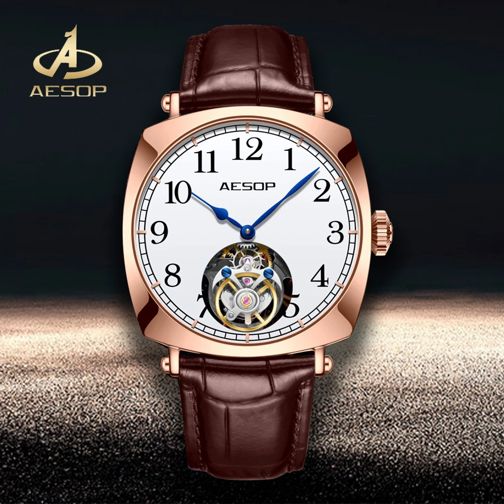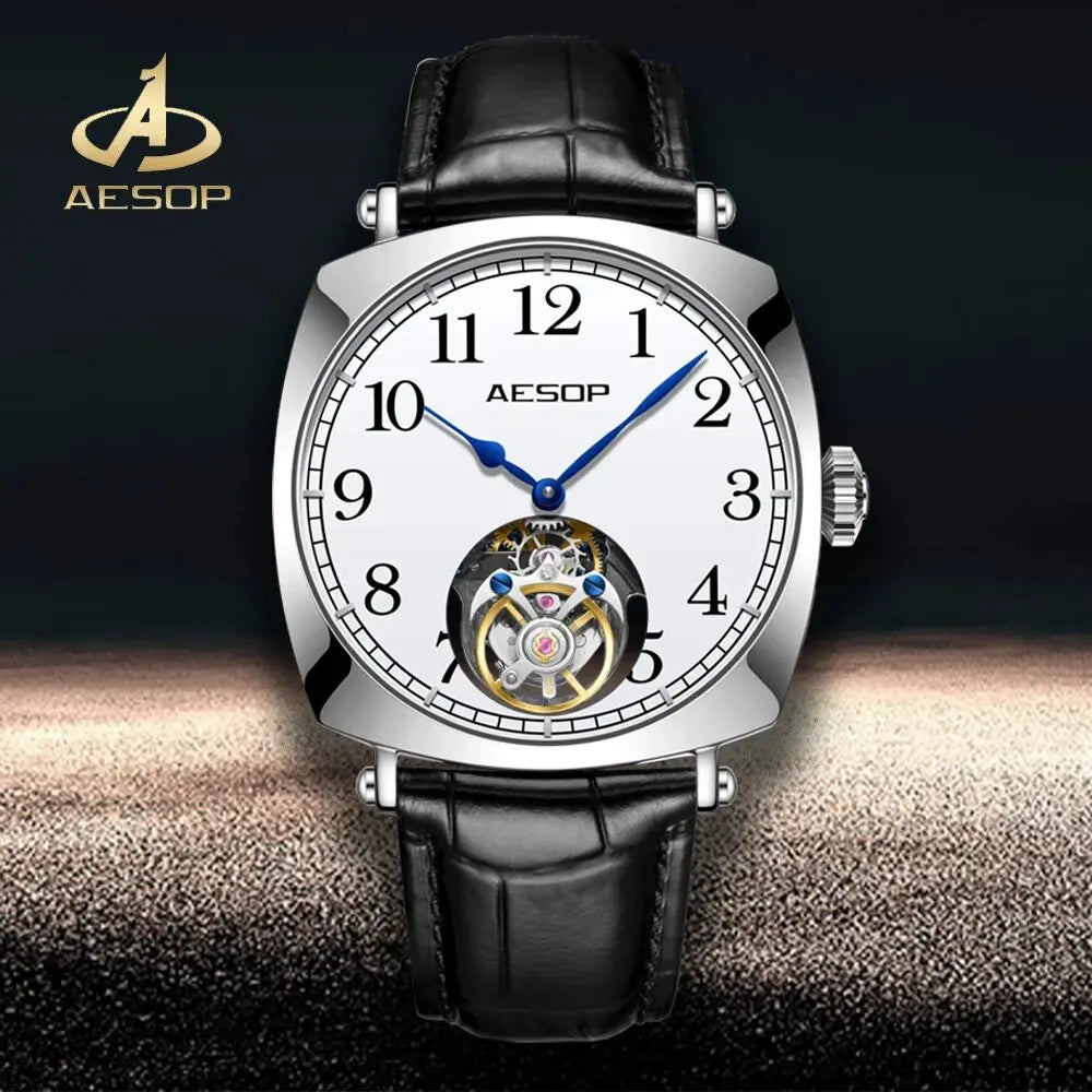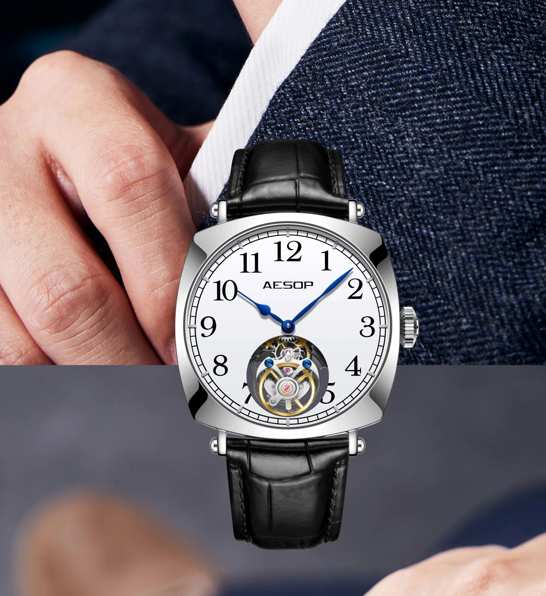 AESOP 7068 Flying Tourbillon Skeleton Watch – 41mm Square Sapphire Mechanical Luxury