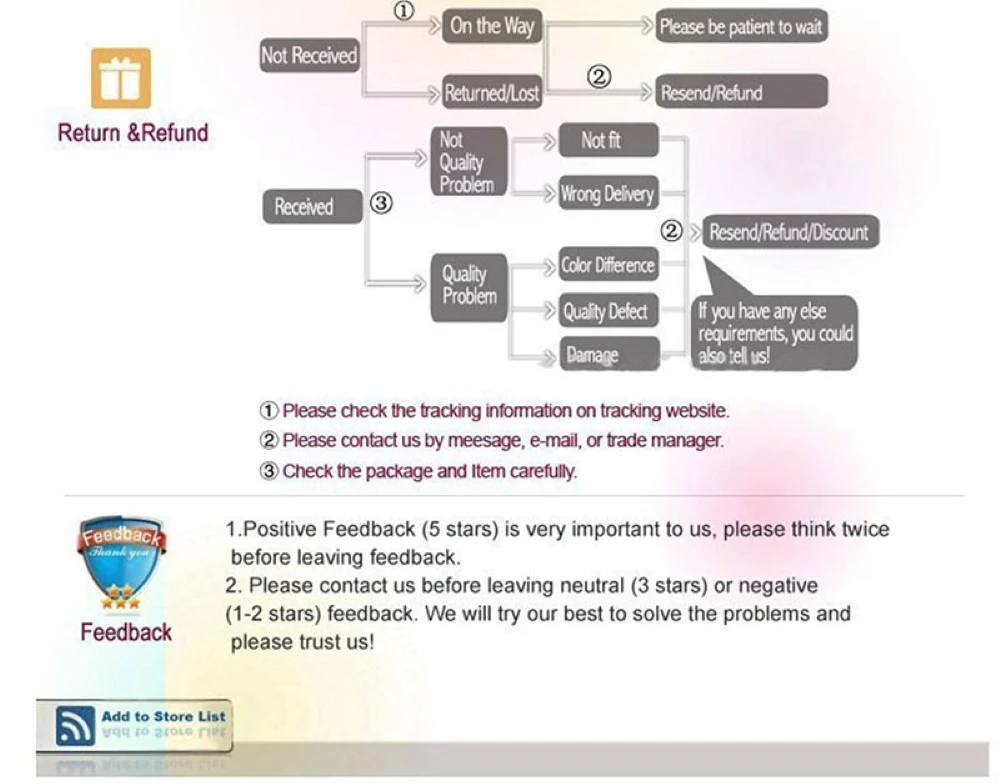 2, If you like our service and products, 5 stars rating positives feeback and upload picture would be appreciated.