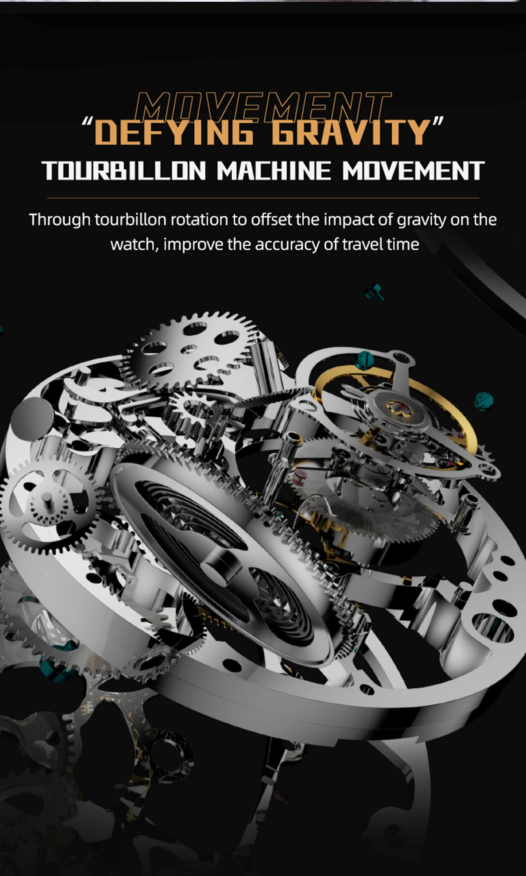 Flying Tourbillon Movement: Original skeleton tourbillon designed to reduce gravity-related timing errors, representing high-level mechanical watchmaking.