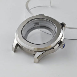 44mmのアクアノートスタイルのウォッチケースは、NHシリーズの自動巻きムーブメントやカスタムメイドプロジェクト向けに設計されています。電気メッキを施したステンレススチール製で、ねじ込み式リューズ、サファイアクリスタル風のフラットガラス、そしてシースルーバックを備えています。グリーンの夜光針が視認性を高め、普段使いにも、カスタムメイドの機械式時計にも最適です。ウォッチアクセサリーのみの販売です。ご購入前に詳細をよくご確認ください。