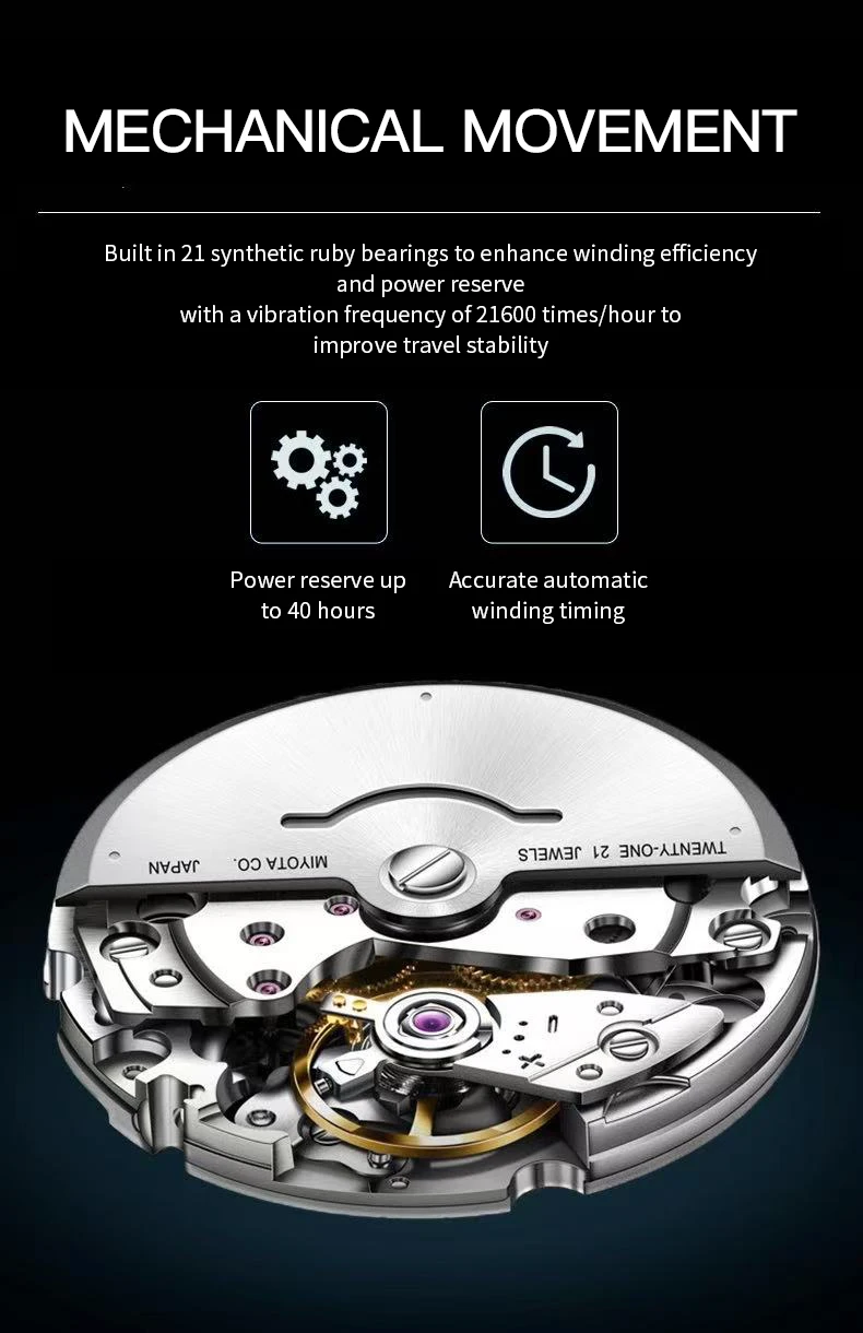 ムーブメント:日本製ミヨタ8215自動巻き機械式ムーブメント