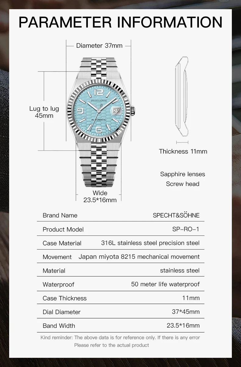 デイトジャスト ウォッチ スペヒト&ゾーネ 37mm 高級自動巻き ミヨタ 8215 ルミナス サファイアクリスタル 50m防水