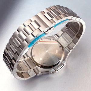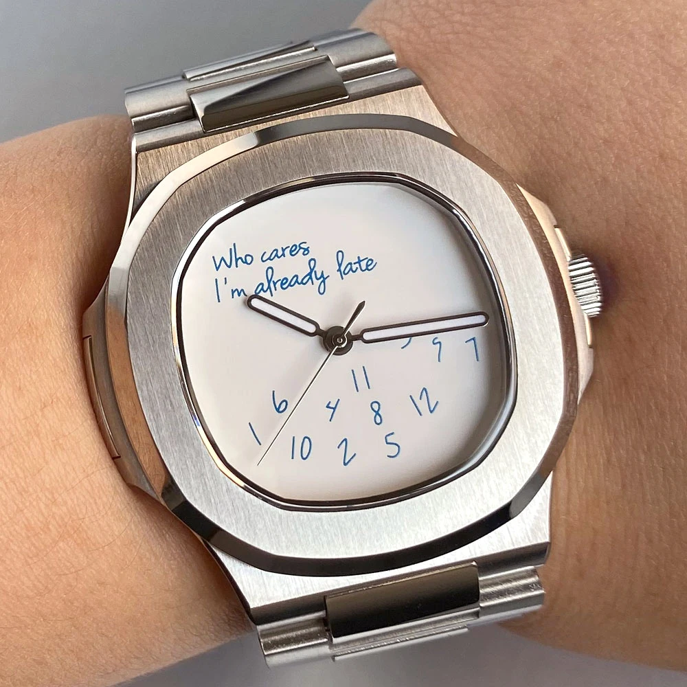 Make a statement with the Tandorio TD302W. Its iconic Nautilus-style case houses a bold white "Who Cares" dial. Choose the robust NH35A or smoother PT5000 automatic movement. Fully customizable with your logo, hands, or strap. Built with a sapphire crystal and 100m water resistance, it's a unique luxury sports watch for the individual.