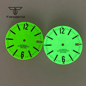 NH35 フルルミナスダイヤル 29mm グリーン/ホワイト 自動巻き腕時計ダイヤル 日付ウィンドウ フルルミナス腕時計フェイス スペアパーツ アクセサリー