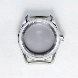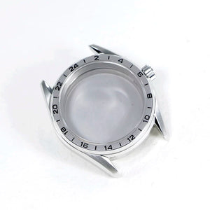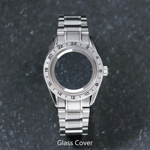 316Lステンレススチール製の高品質GSスタイル改造時計ケース。チャプターリングなしで文字盤に直接組み付けられるよう設計されたこの38mmケースは、NH35/NH34 GMTおよび複数のセイコームーブメントに対応し、サファイアクリスタルと信頼性の高い100m防水性能を備え、プレミアムカスタムビルドや改造に最適です。