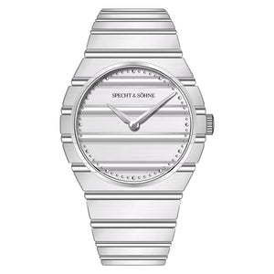 スペヒト&ゾーネ 37MM POL クォーツウォッチで、洗練された時を刻む時計を体感してください。こだわりの紳士のためにデザインされたこの超薄型タイムピースは、高精度クォーツムーブメントとサファイアクリスタルの文字盤を組み合わせ、卓越した透明度と耐傷性を実現しています。37MMケースは、存在感を放つ十分な重厚感と、フォーマルからカジュアルまで幅広いシーンで活躍する洗練されたデザインを両立させ、エレガントなバランスを実現しています。洗練されたデザインを損なうことなく耐久性を追求したこの男性用レロジオは、ドイツの時計製造の伝統と現代的なデザインの融合を体現しています。控えめなエレガンスへの投資であり、その美しさに劣らない機能性も兼ね備えています。