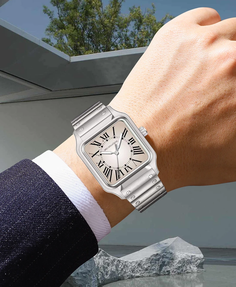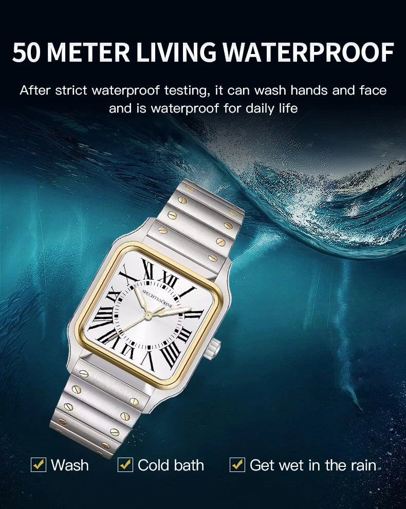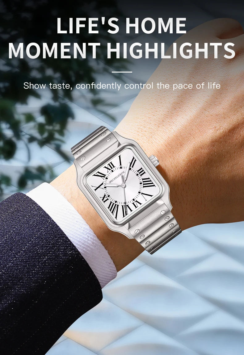 クォーツスクエアウォッチ Specht & Söhne Classic 34MM 超薄型カジュアルウォッチ サファイア 50M 防水 Reloj Hombre