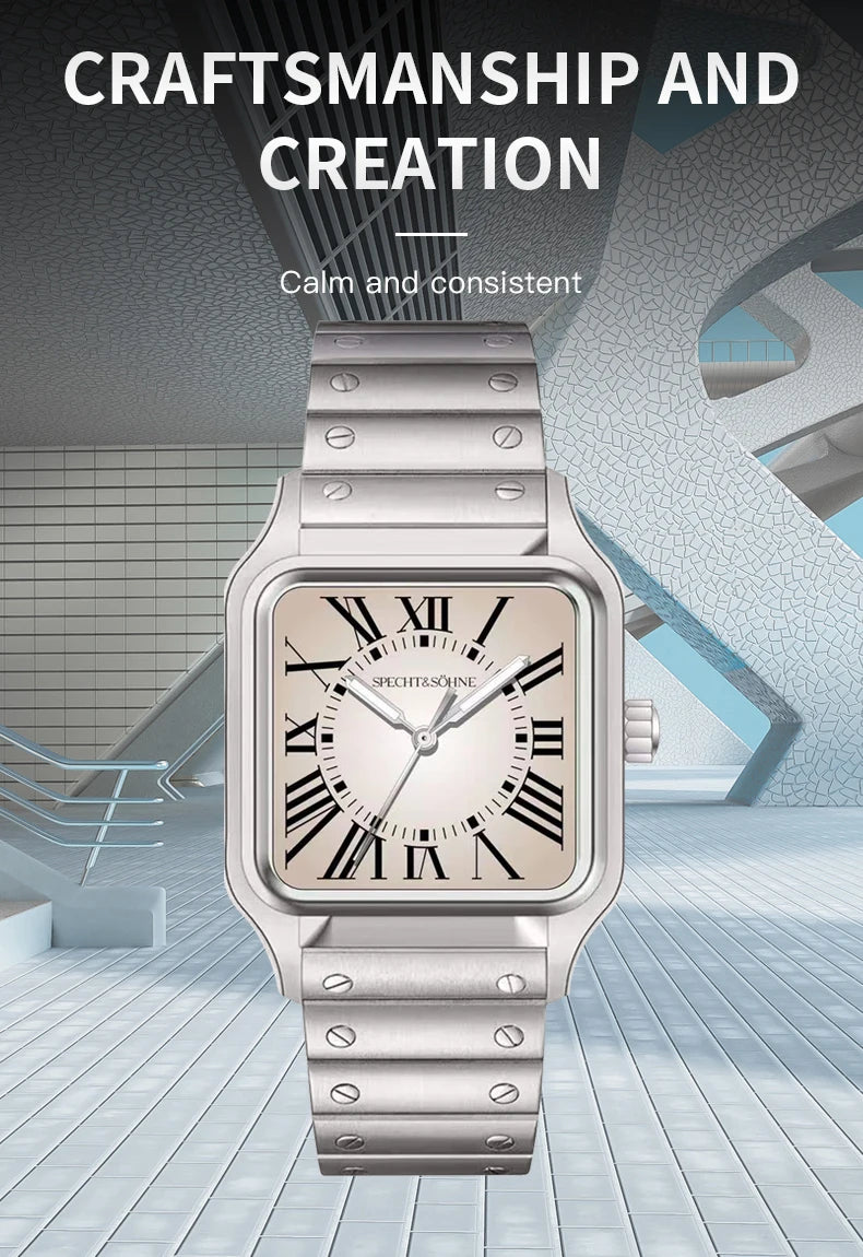 ファッションウォッチ スクエア Specht & Söhne 35MM レディース メンズウォッチ トップブランド 高級ヴィンテージウォッチ 男性用 日本製 VH31 ムーブメント サファイアクリスタル 防水