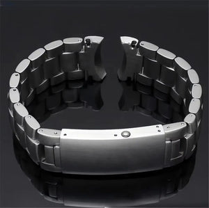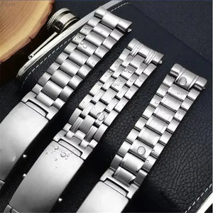 Upgrade your dive watch with this Seamaster-style bracelet, crafted from 904 solid stainless steel for superior corrosion resistance and durability. Compatible with Seamaster, Speedmaster, and Planet Ocean style cases, this watch band is available in 20mm or 22mm widths with a standard 18.5cm length. The robust construction delivers a premium feel and secure fit for your sport or dress watch build.