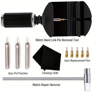 The Watch Link Removal Tool Kit is the ultimate solution for precise watch band adjustments. This 11-piece set is perfect for resizing, repairing, or adjusting watch straps, making it an essential toolkit for professionals and enthusiasts alike.