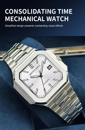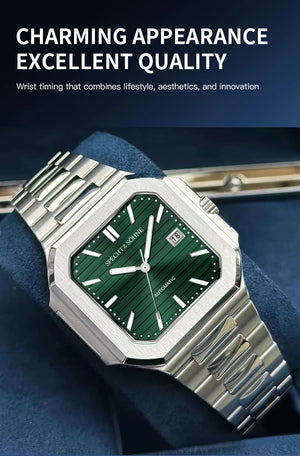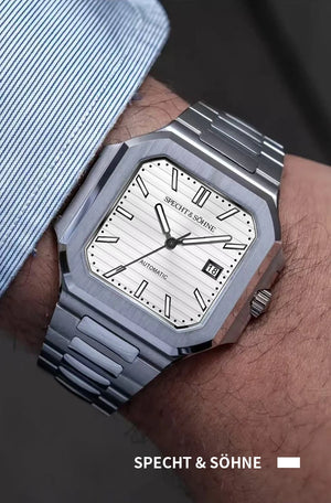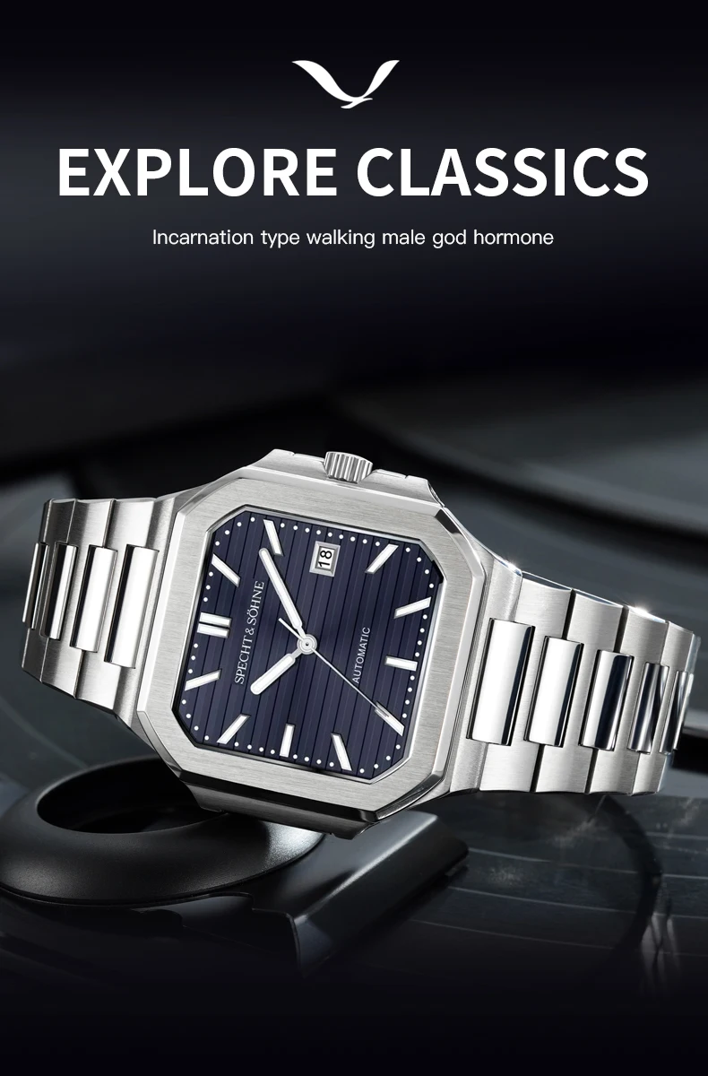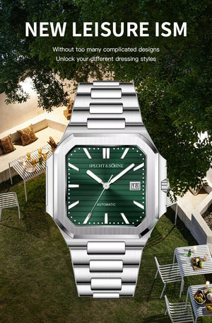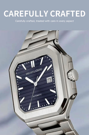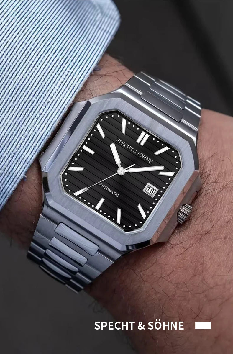 Luxury Square Design: Premium Specht & Söhne cubic automatic watch for men, powered by Japan Miyota 8215 mechanical movement. Bold square case, sapphire crystal, and sporty elegance for daily wear.