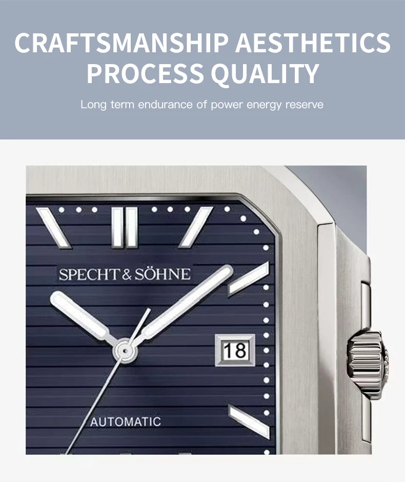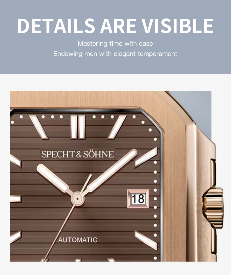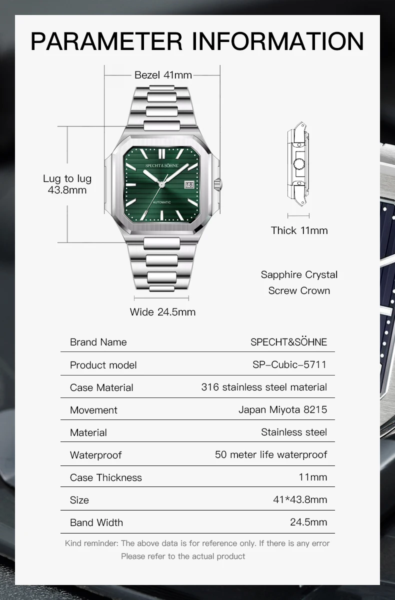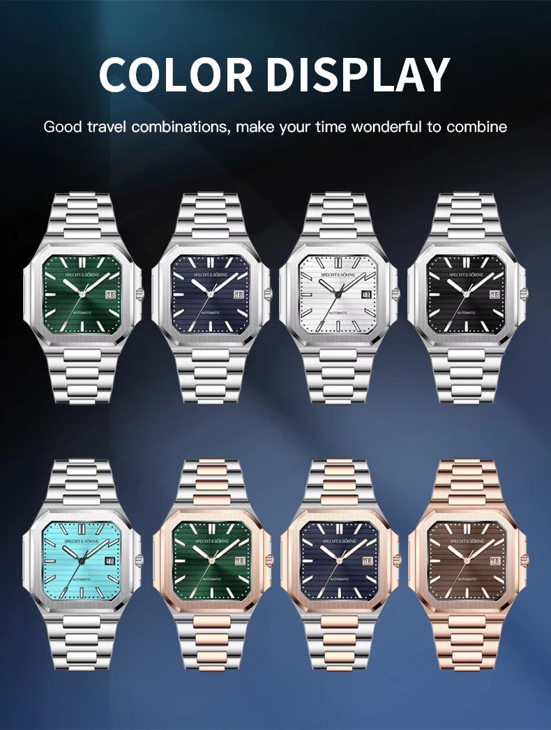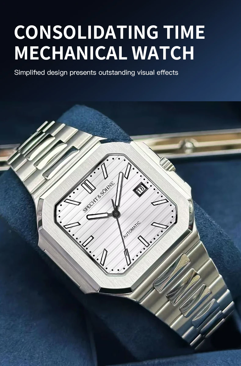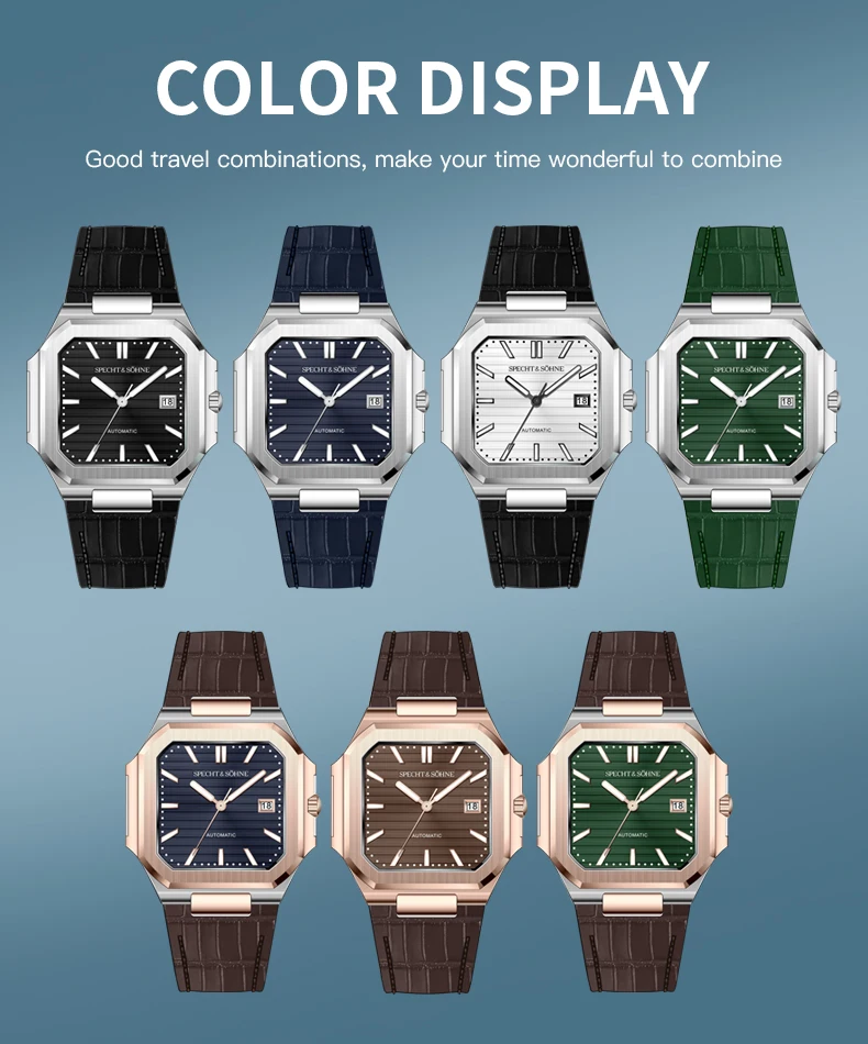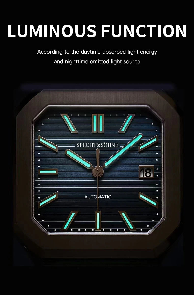 Miyota 8215 Cubic Watch 41MM Specht & Söhne Square Watch For Men Sapphire Crystal Automatic50M Waterproof
