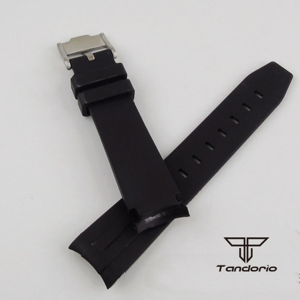 20mm Width Black Rubber Watchband Pin Buckle Curved End Fit for 40mm Watch Case Wristwatch Spare Parts Replacements