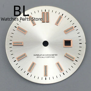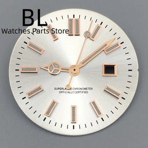 Elevate your women's mechanical watch with this precision-engineered 24.5mm sunburst dial. Featuring rose gold stick indices and numerals, this replacement dial delivers sophisticated aesthetics with technical excellence. Specifically designed for NH05 and NH06 movements, it fits seamlessly into 31mm watch cases. The sunburst finish creates captivating light-play across the dial surface, while the rose gold accents complement both classic and contemporary designs. Perfect for watch enthusiasts and modifiers seeking to customize or restore their timepieces with quality components that maintain mechanical accuracy and visual appeal.