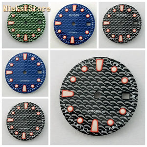 28.5mm Black / Blue / Green Watch Dial — Blue Luminous — Fits ETA2836/2824, Miyota 82-series & Mingzhu DG2813/3804