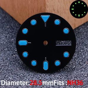 Construct the ultimate custom timepiece with this feature-packed 28.5mm dial, designed as the perfect heart for watches powered by the Seiko NH36 automatic movement. More than just a beautiful face, this dial fully integrates the movement's practical day-date complication, combining essential functionality with stunning luminous performance in 13 vibrant colors.