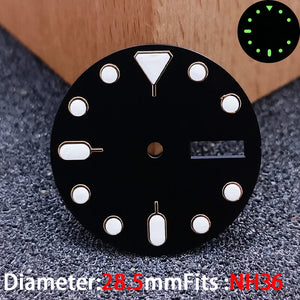 Precision Fit, Effortless Installation: With an exact 28.5mm diameter and correct dial feet placement for the 3 o'clock crown position, this dial drops directly onto NH36, NH35, 4R36, and other compatible movements without modification.