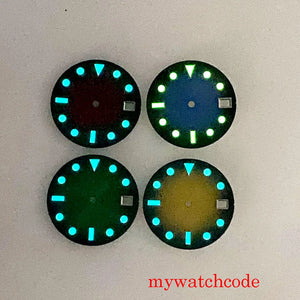 28.5mm Green Blue Red No Logo Luminous Marks Watch Dial Face For NH35 Automatic Movement