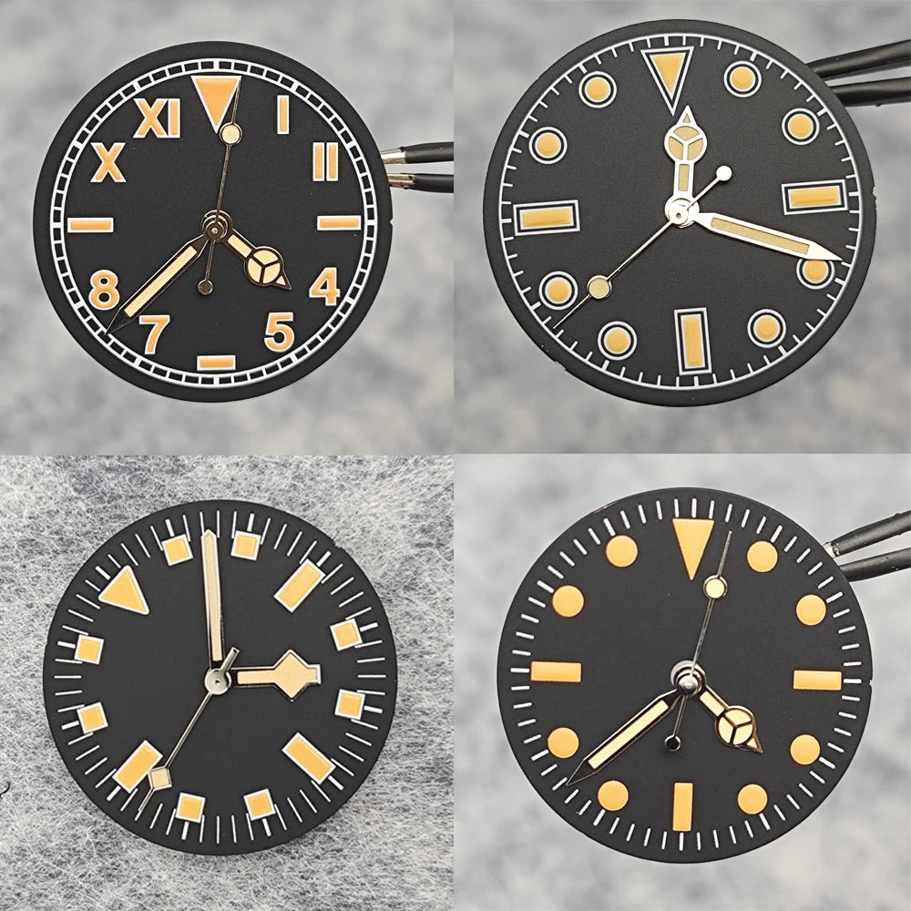 28.5mm Green Luminous Watch Faces Retro Watch Dial + Watch Hands Modified Dial Men's Watches Accessories for NH35/ NH36 Movement