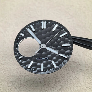 28.5mm Honeycomb Texture Watch Dial Hands Set Green Luminous Faces for NH34 NH38 Movement