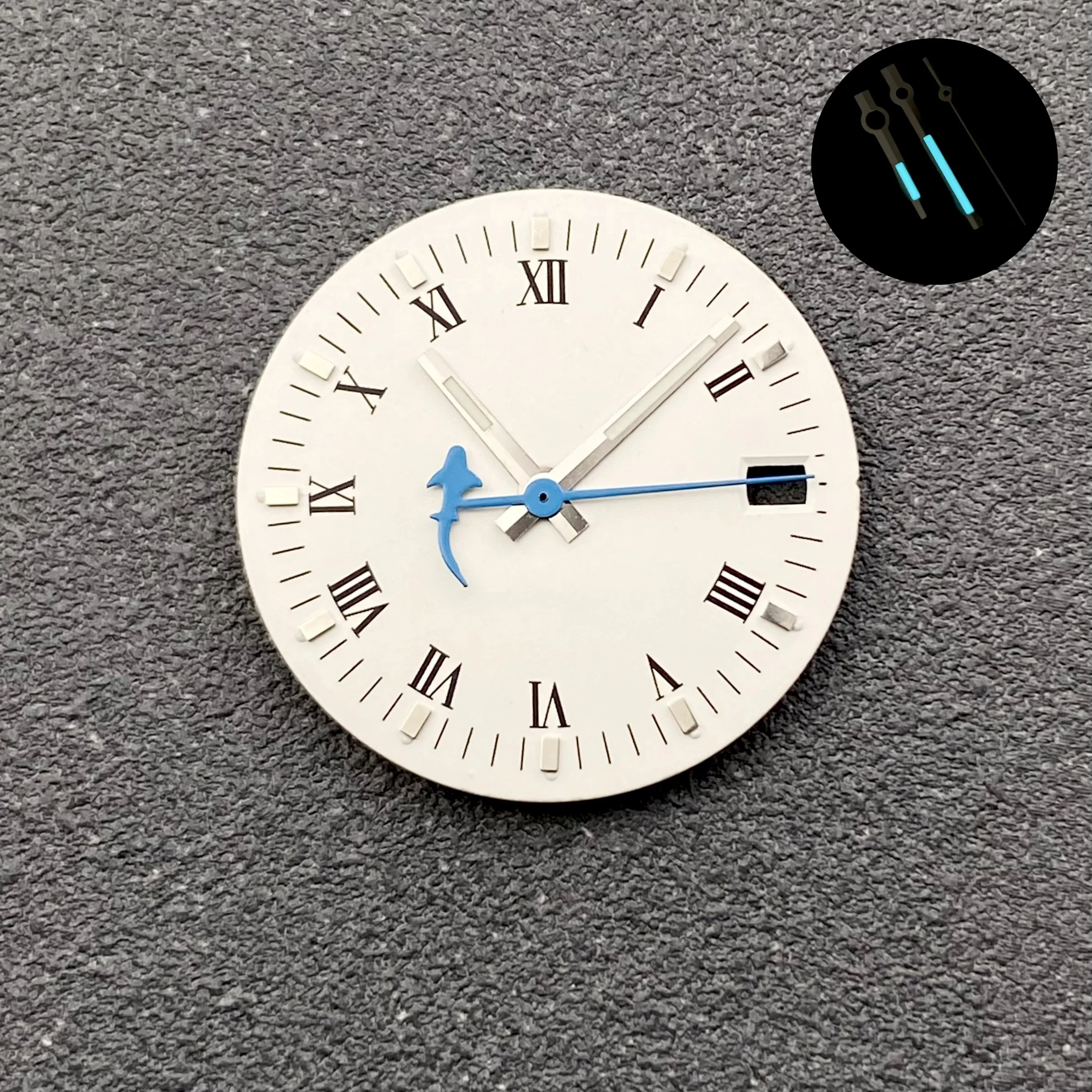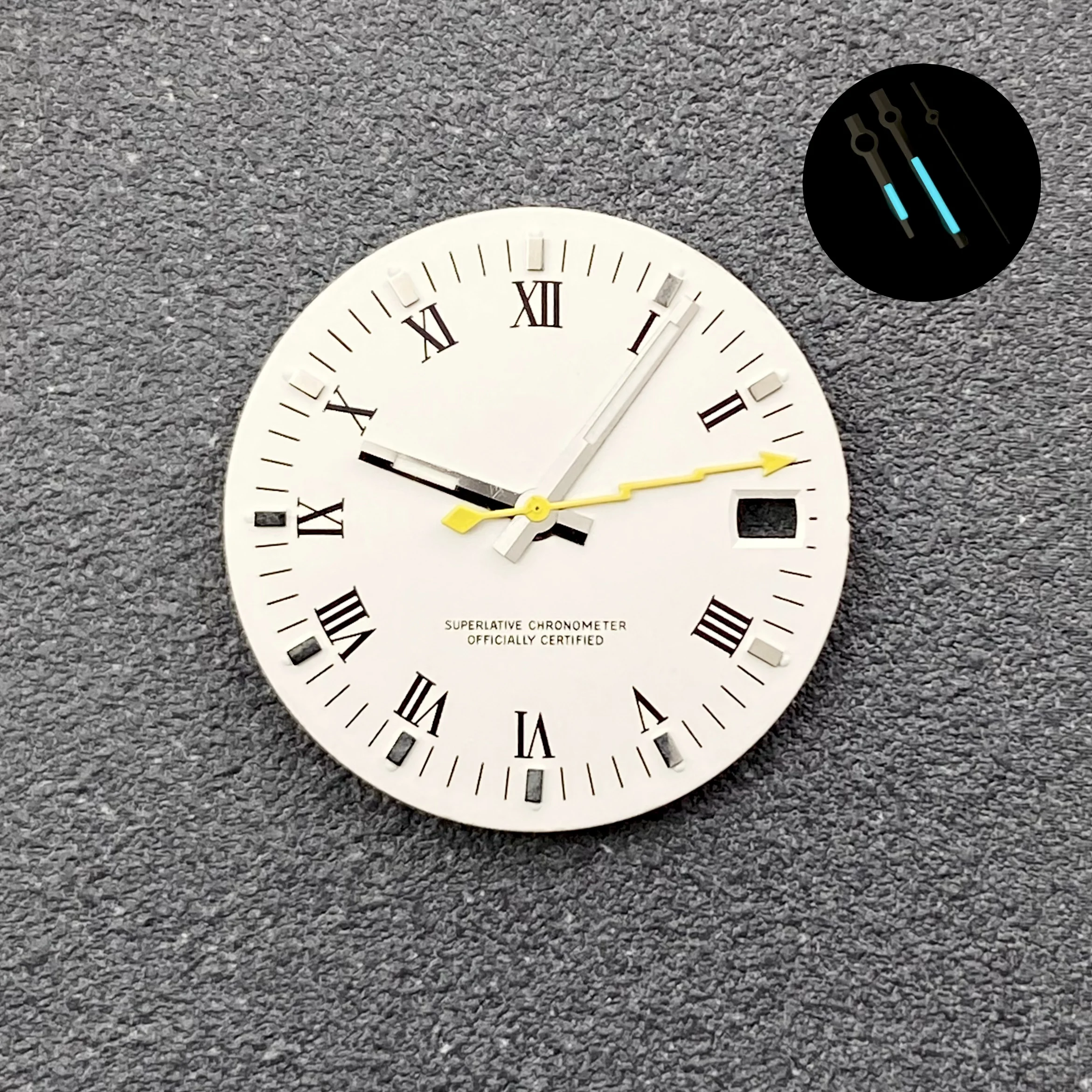 28.5mm NH35 Dial Roman numerals White Vintage No logo Single calendar Fit NH35 NH36 Movement Watch Dial Accessories