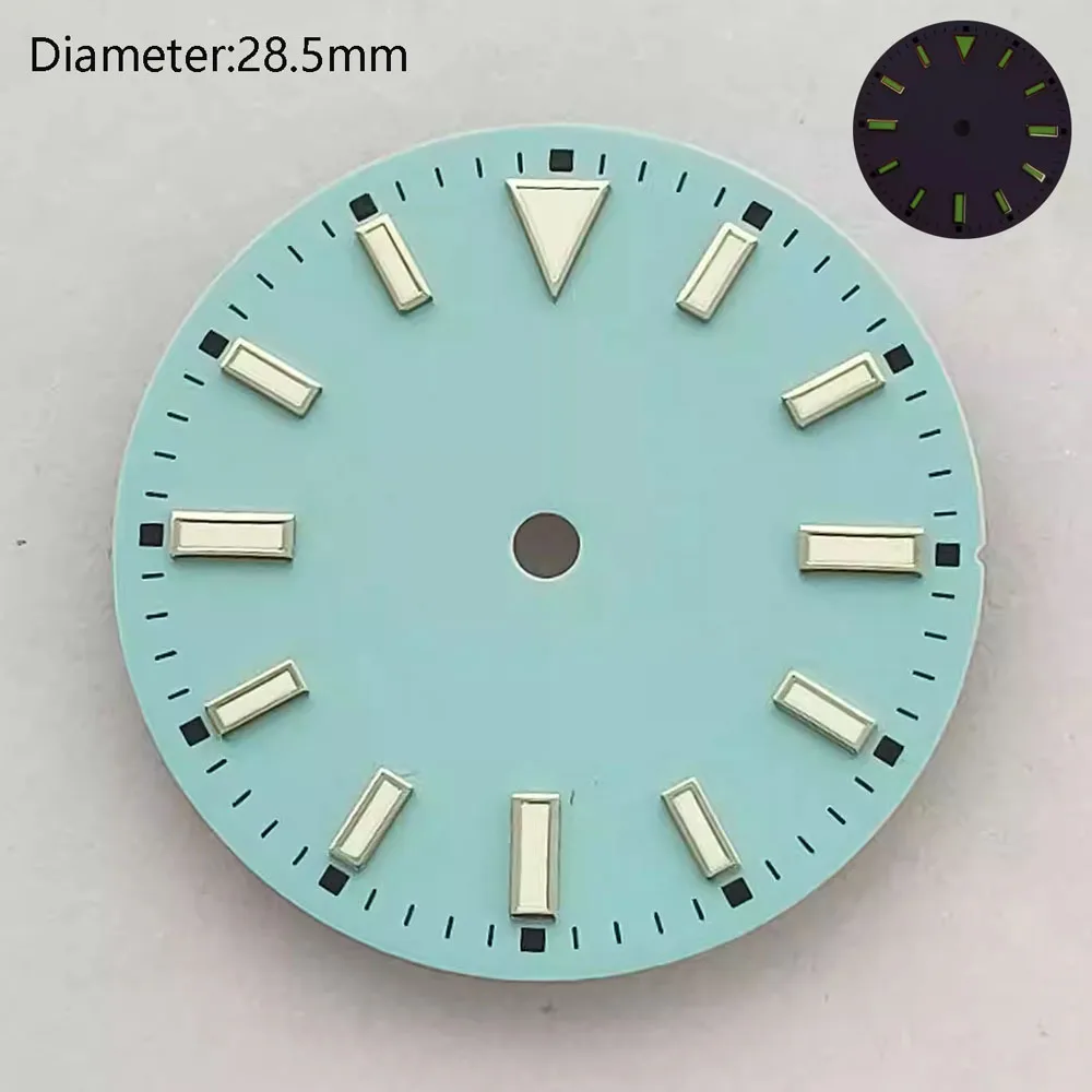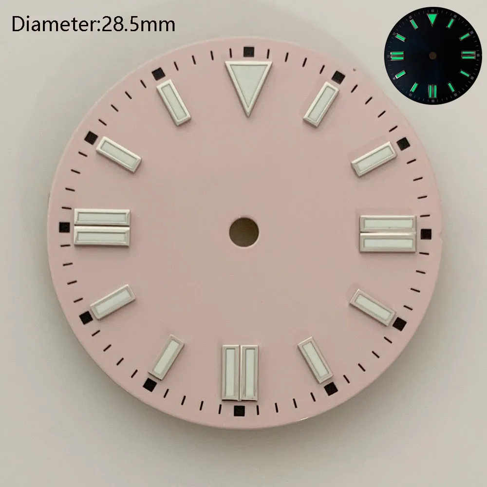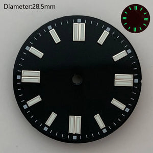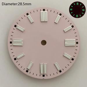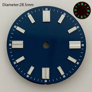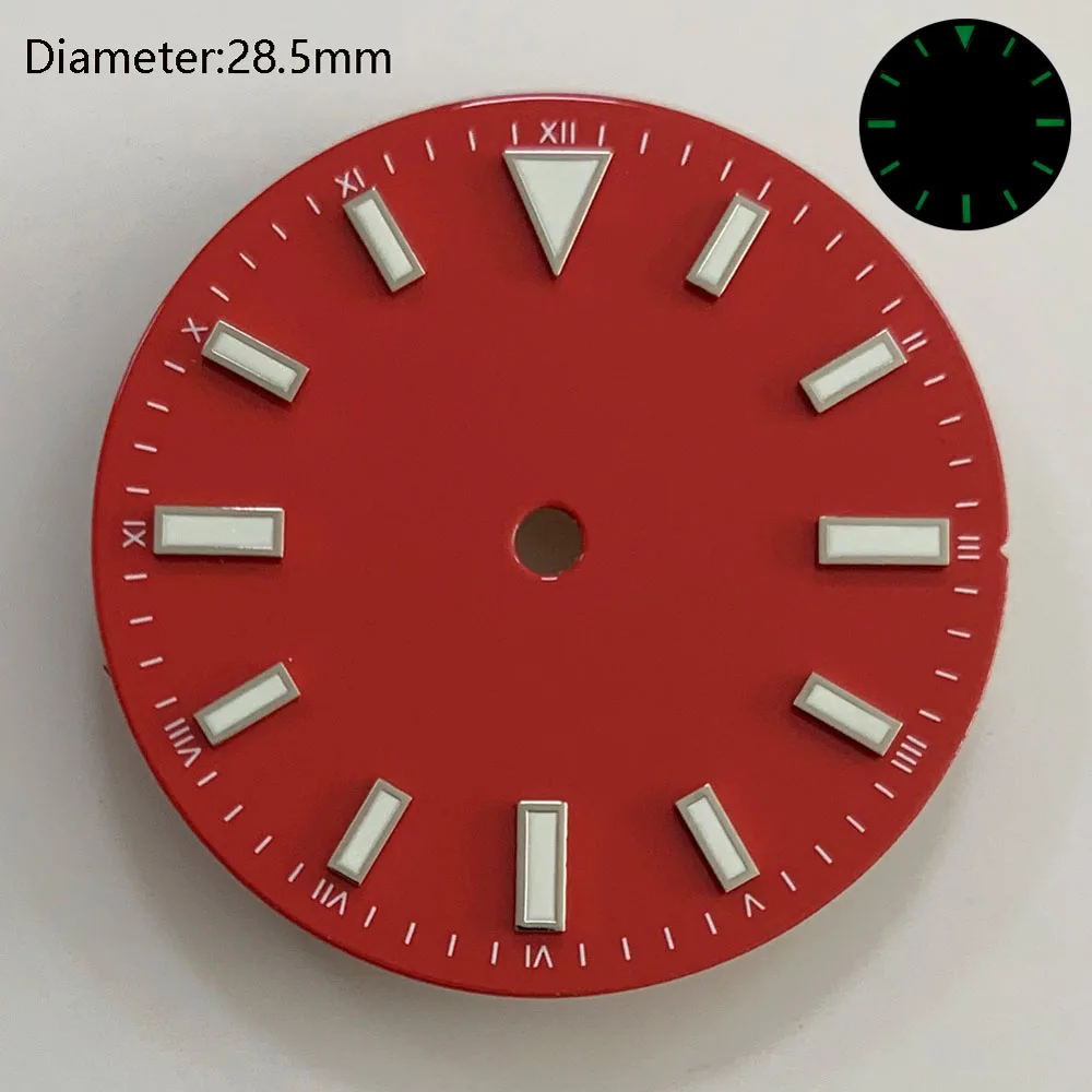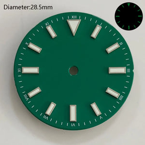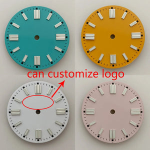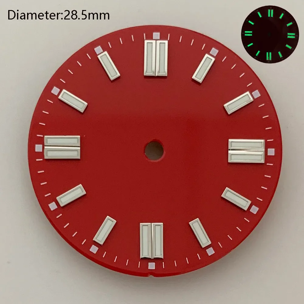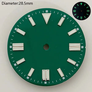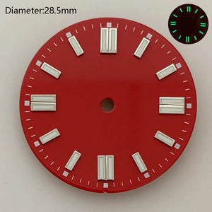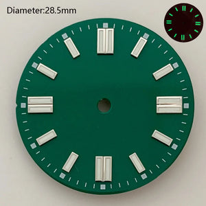 28.5mm NH35 double bar watch dial luminous grass green red dark blue yellow dial for NH35 automatic movement watch accessories can customize logo