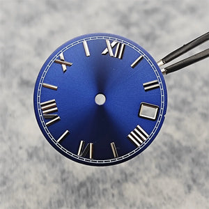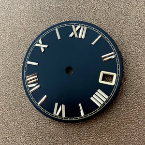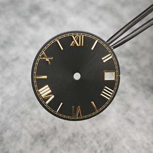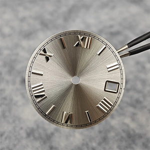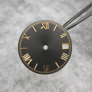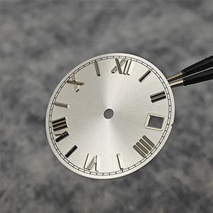 28.5mm Roman Scale Watch Dial Real Nail Modified Replacement Watch Faces with Single Calendar Window for NH35/NH36/4R Movement
