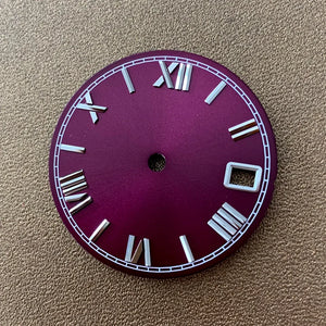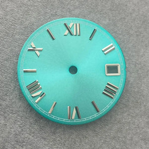 Expertly crafted with real nail modification, this 28.5mm Roman Scale Watch Dial offers a unique and sophisticated look for your watch. Featuring a single calendar window, it is compatible with NH35, NH36, and 4R movements. Elevate your timepiece with this high-quality replacement watch face.