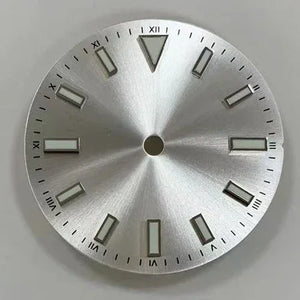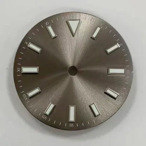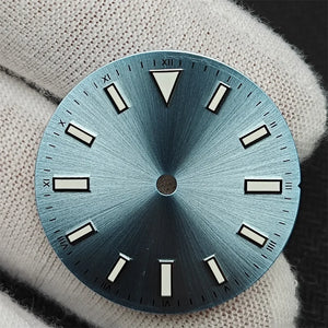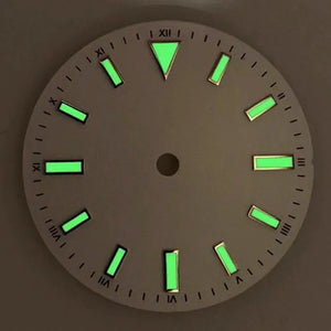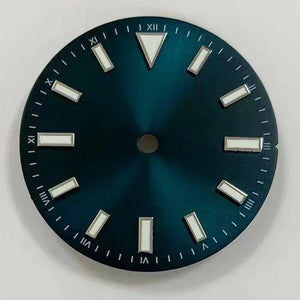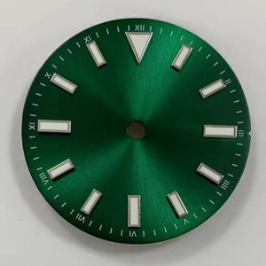 Upgrade your watch with our 28.5mm Sunray Dial, featuring green luminous font and stripe nails for enhanced visibility. Designed for NH35/8215/2836 movement, this modification adds both style and functionality to your timepiece. Expertly crafted with precision and durability, perfect for watch enthusiasts.