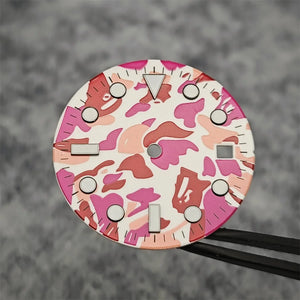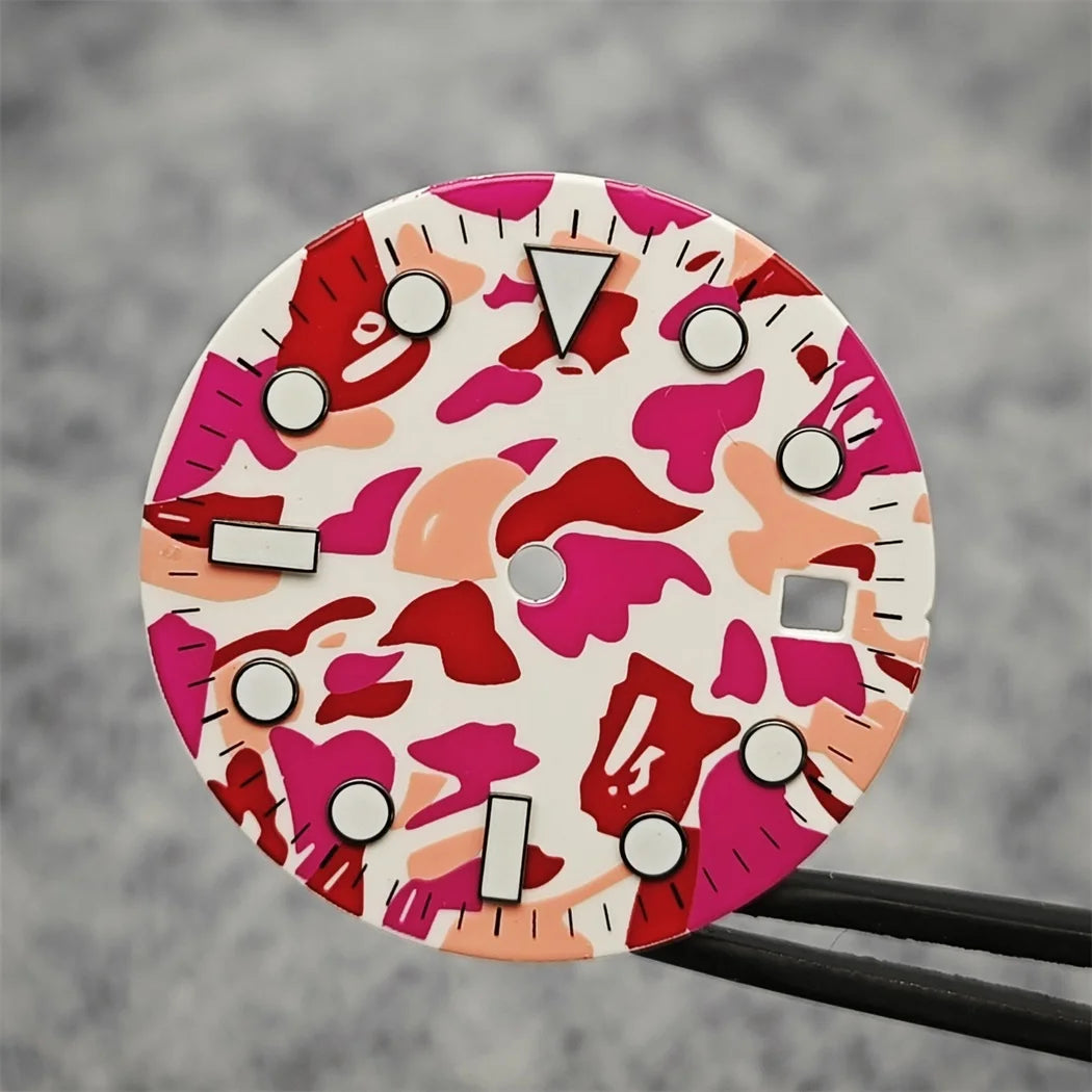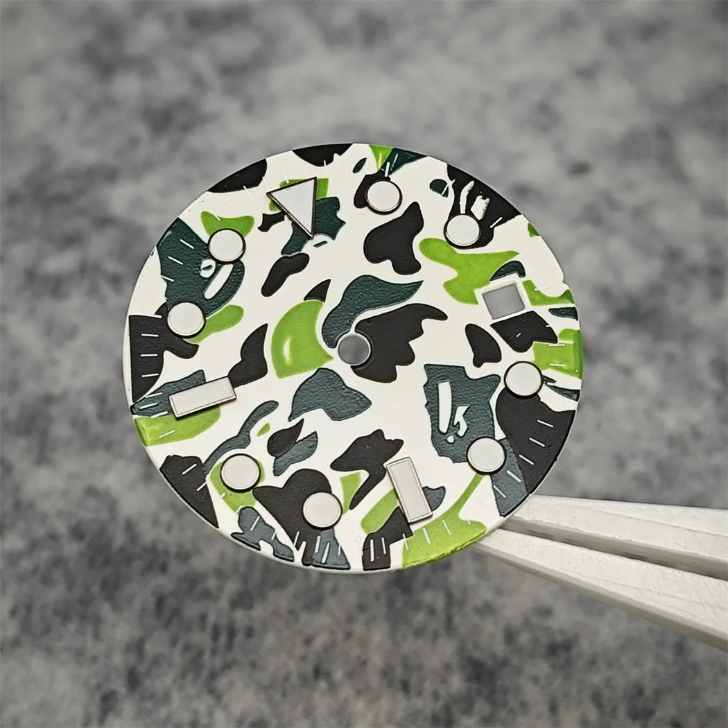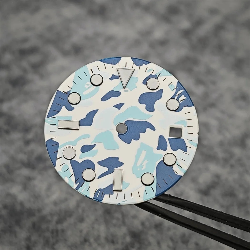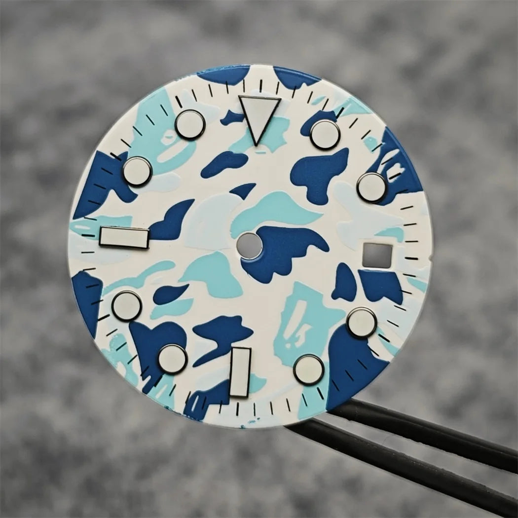 28.5mm Watch Dial Blue Luminous Watch Faces Camouflage Dial with Calendar Window Watch Accessories for 2813/8512/8200 Movement