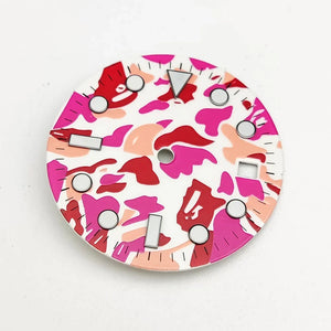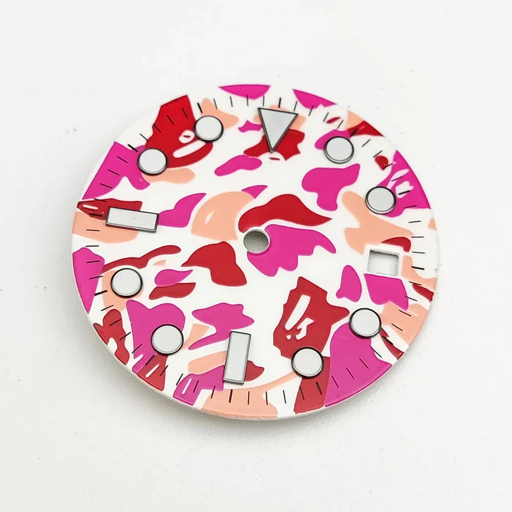 This 28.5mm watch dial features a unique blue luminous camouflage design and a convenient calendar window. Compatible with 2813, 8512, and 8200 movement, this watch accessory adds style and functionality to your watch collection. Upgrade your timepiece today with this high-quality watch face.