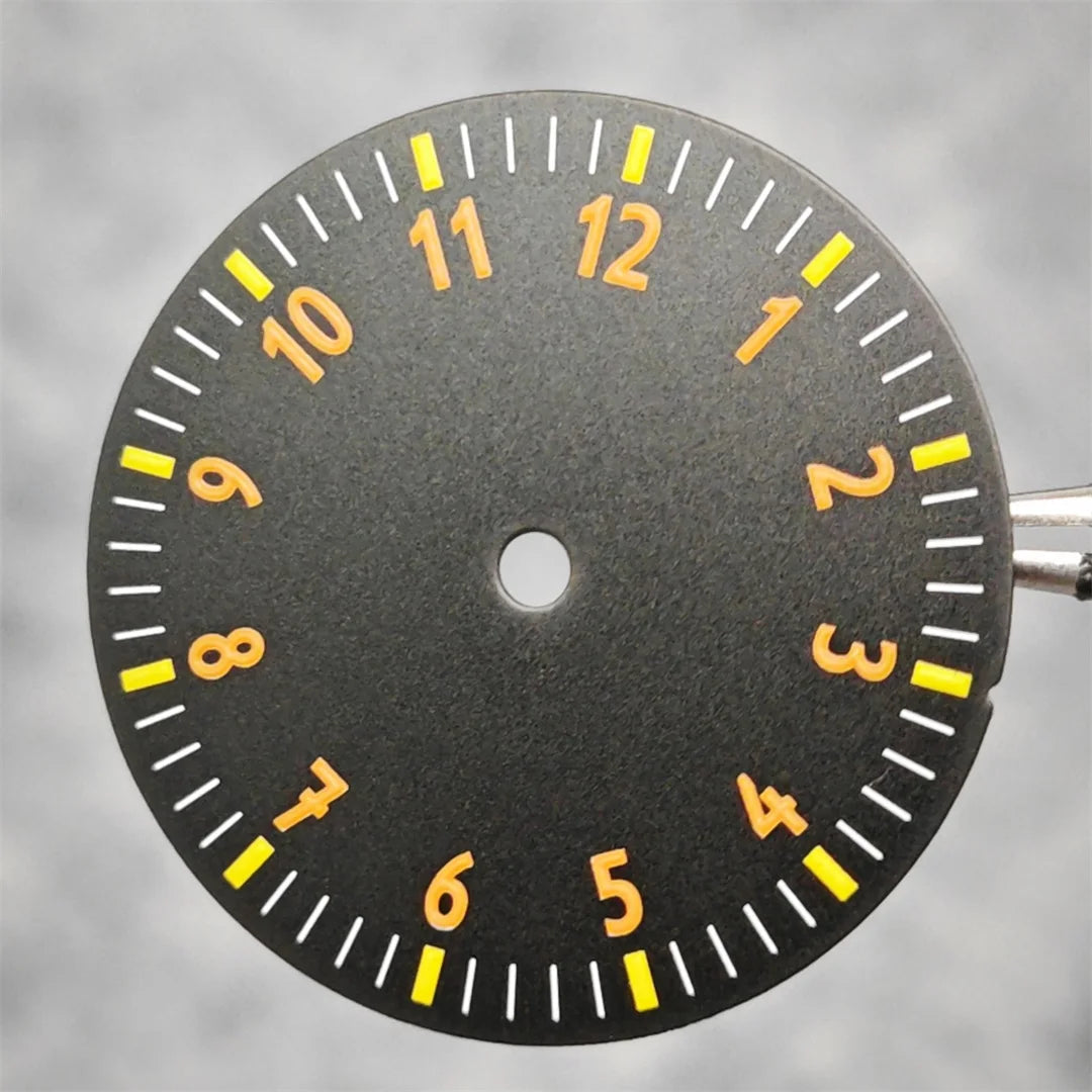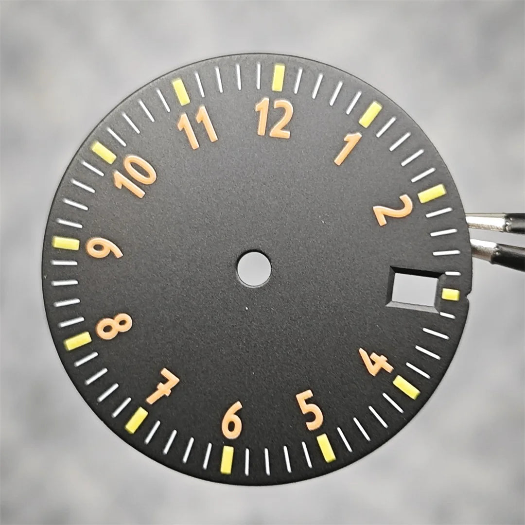 33.5mm Black Watch Dial Arabic Numerals Fit NH 35A NH 36A ET A2824 PT 5000 Automatic Movement Orange/White Hands Green Luminous
