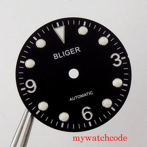 Full Luminous Dial 29mm dial Black White Dial With Hands Fit NH34 NH35 NH36 Movement Green Luminous Watch parts