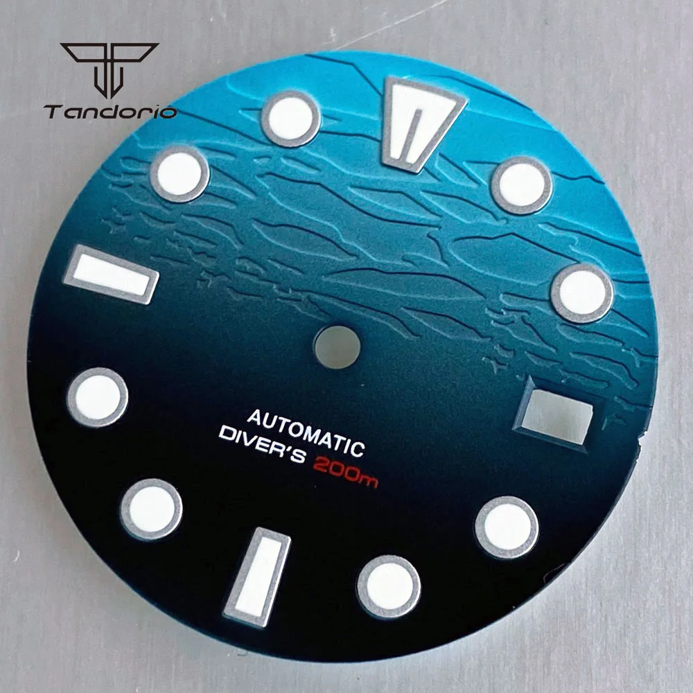 29mm Blue Ocean Matte Texture Watch Dial Gradient Color Fit NH35 Date Window Hands Set Green Lume Wristwatch Face Accessories