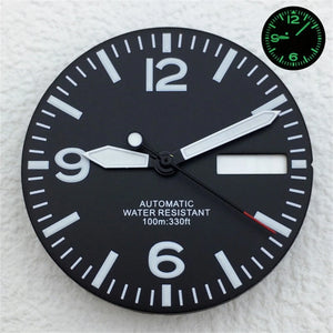 Full Luminous Dial 29mm dial Black White Dial With Hands Fit NH34 NH35 NH36 Movement Green Luminous Watch parts