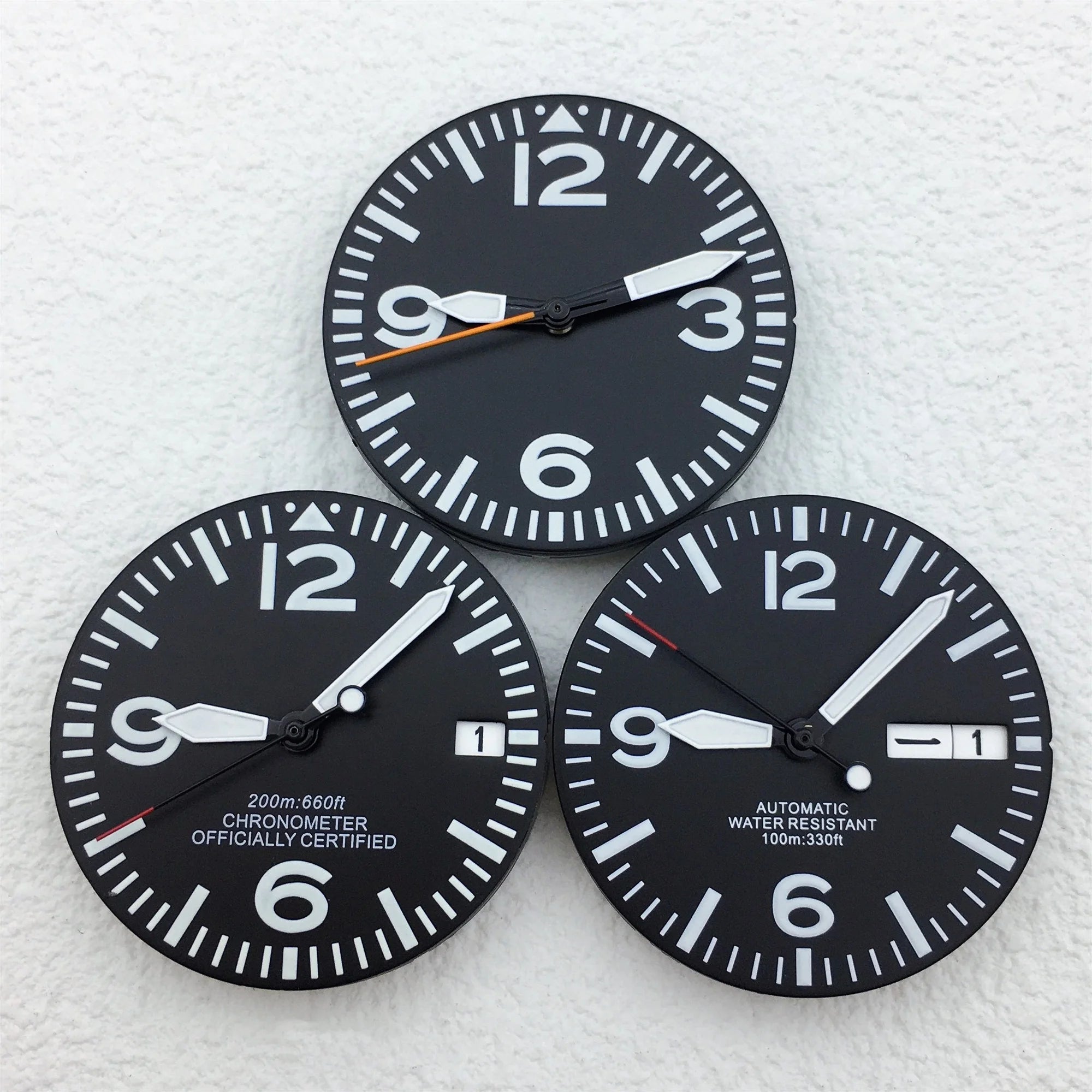 This Full Luminous Dial set features a 29mm white dial with green luminous coating for clear visibility in low-light conditions. Supplied with matching hands, it is designed to fit NH34 / NH35 / NH36 automatic movements, making it ideal for diver watches, custom builds, and replacement projects. Clean layout and strong lume performance make it a reliable choice for watch modders.